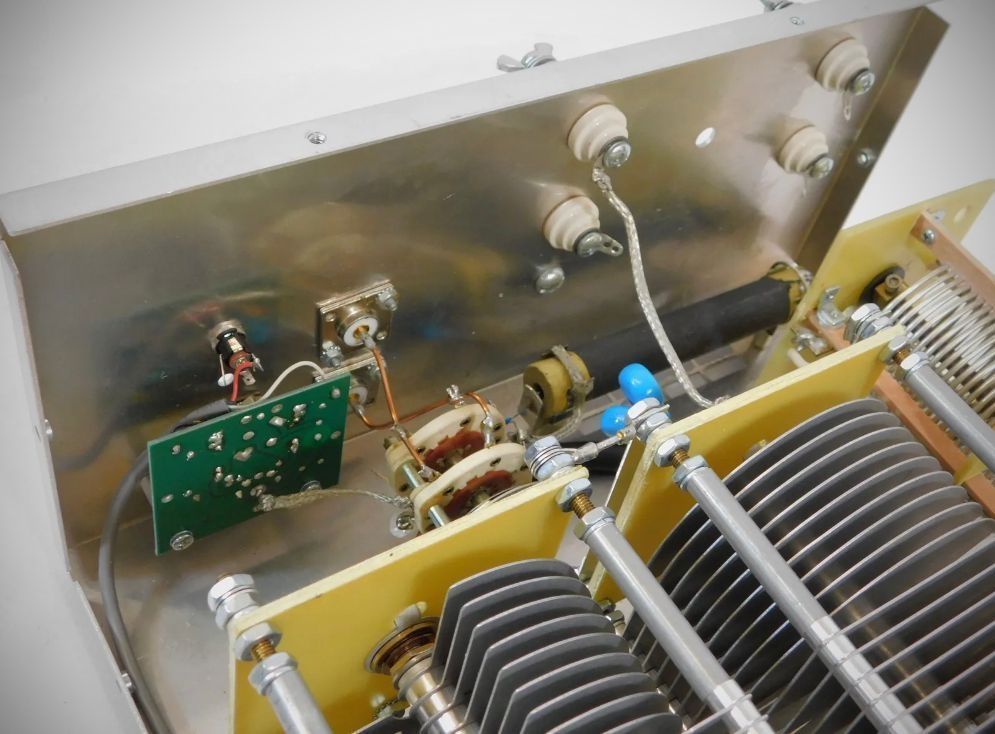 The more roomy cabinet helps maintain high Q. Vent holes keeps components cool. Non-stripping PEM nuts, wing-nut ground post, fire-retardant epoxy glass PC board, and heavy gauge wire throughout.