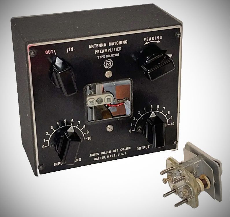 A combination electronic impedance matching device and broad band preamplifier, designed for use on six and 10 meters. Not referred to as the "R-9ER" until 1948.