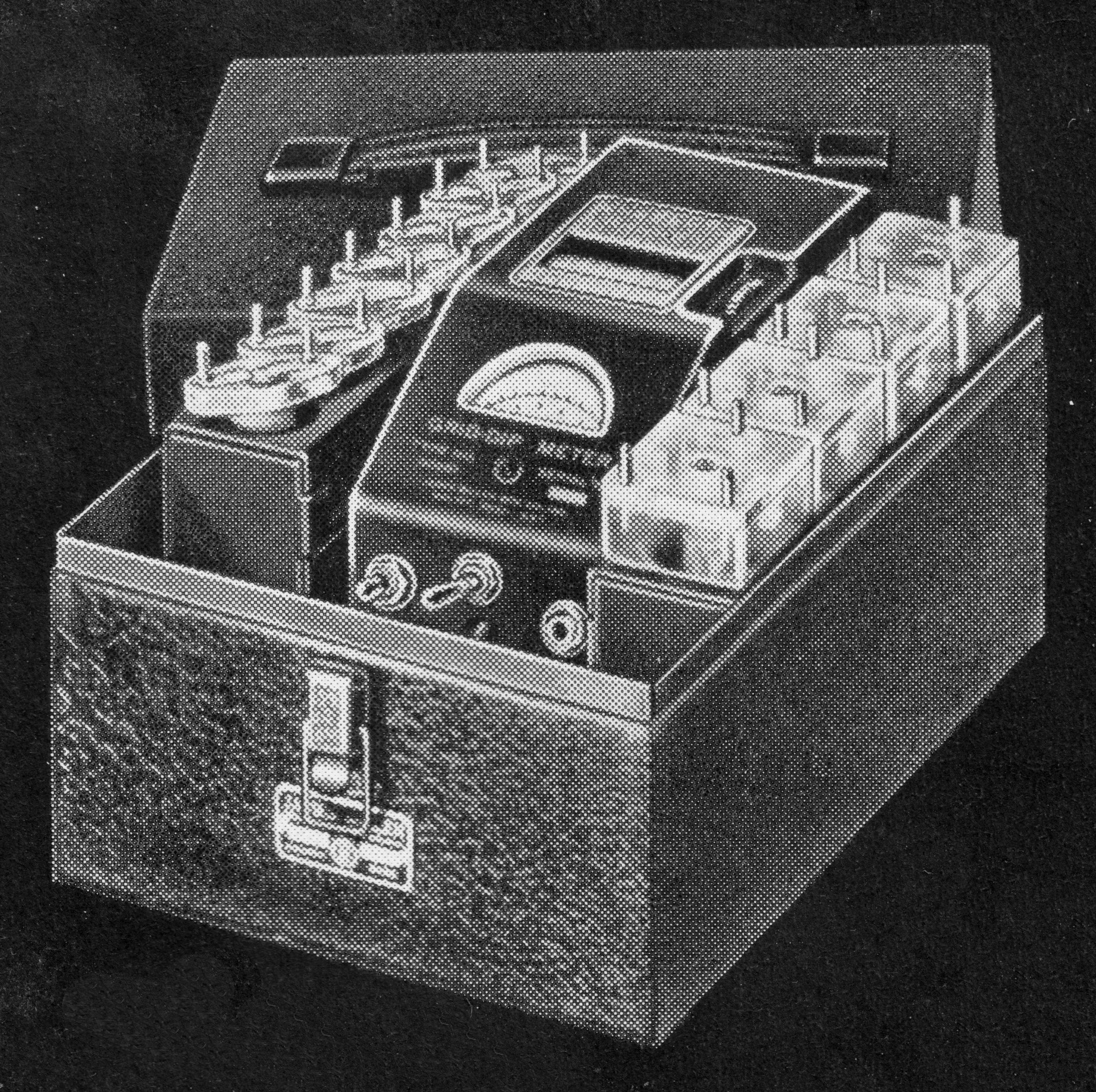 All models are complete with a built-in power supply, with connections for battery power for use in the field where AC power is not available.The meter is a standard General Electric 2 inch type. The calibrated dial is a large 270º drum dial with seven direct reading scales, plus an additional universal, or logging, scale. All color-coded scales have the same length and readability.