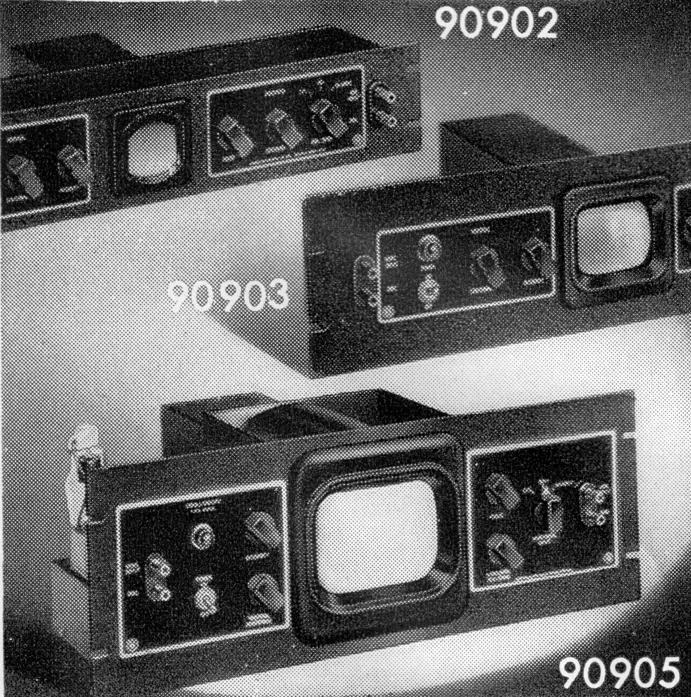 The 90900-series scopes were basic rack-mount units that could be used for transmitter monitoring. They came with a power supply and controls for brilliance and centering. The last digit in the model number indicated the scope tube size.