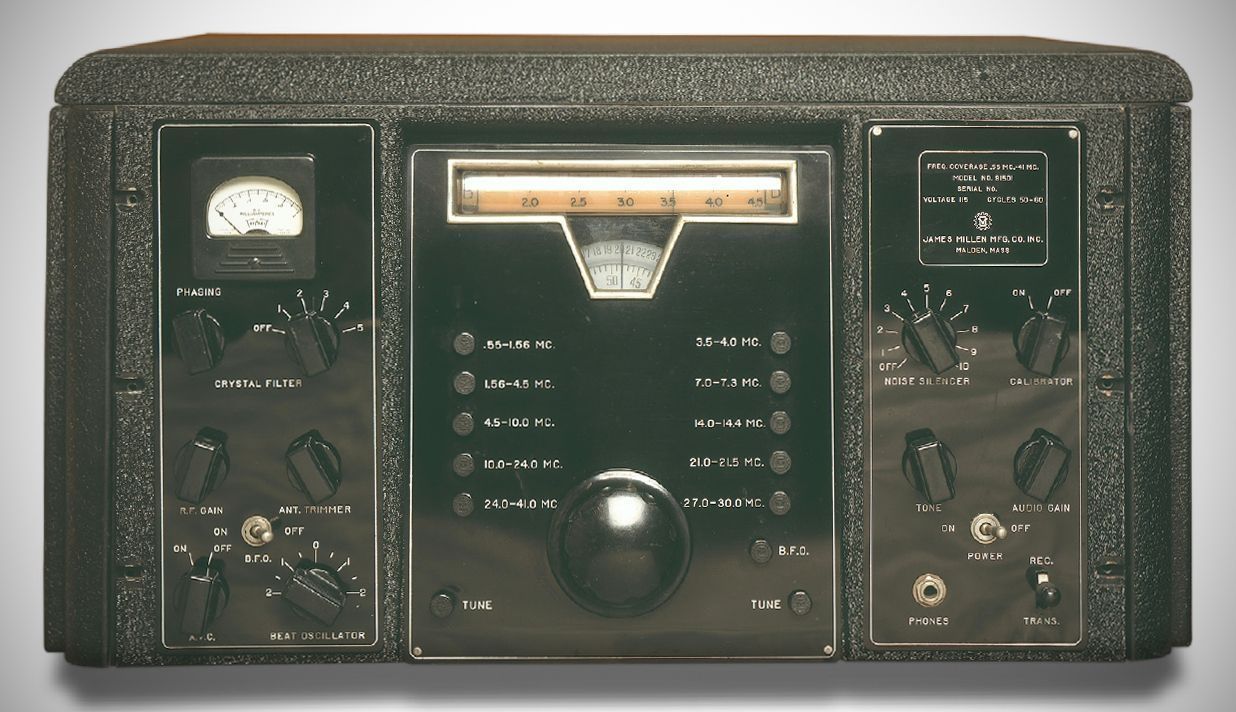 James Millen set out to design the ultimate post-war receiver, incorporating every feature a ham could want and surpassing the performance of anything else on the market. The DFP 501 covered 0.55–41 MHz in five bands and also had band spread for five ham bands from 80 through 10 meters. Electric motors assisted the tuning and did the band switching. The set employed 19 tubes and a pair of semiconductor diodes. By the time one prototype was completed, it had become obvious that the selling price of a production model would be far beyond what the late-1940s economy would bear. Millen displayed the prototype at a 1947 trade show, but the project was shelved.