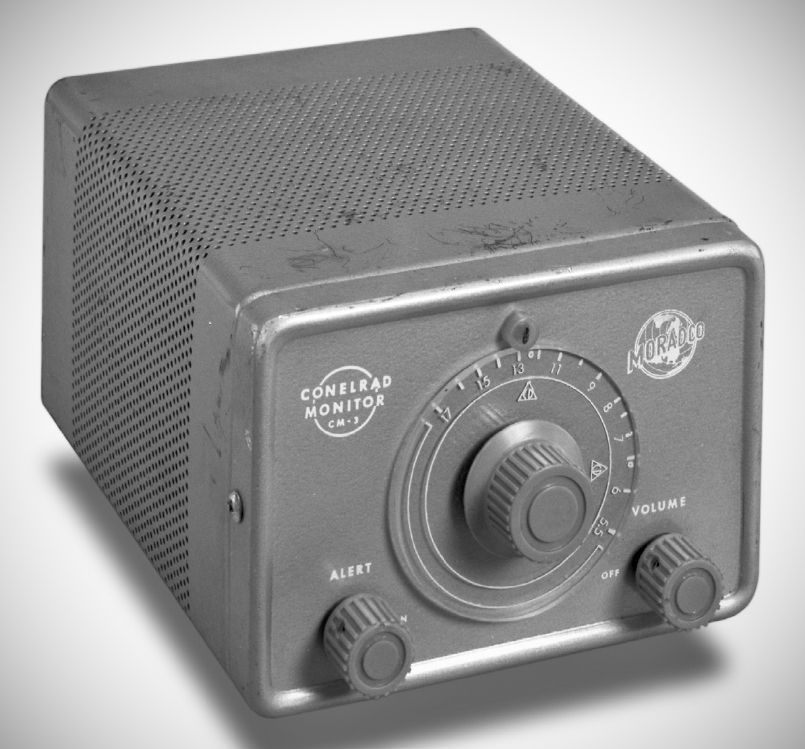 Morrow’s Conelrad monitor was a six-tube superhet that covered the broadcast band from 550 to 1750 kHz. When the monitored station’s carrier was interrupted, the CM-3 sounded a penetrating alarm but did not interfere with the amateur’s transmitter. It was powered by 117 VAC.