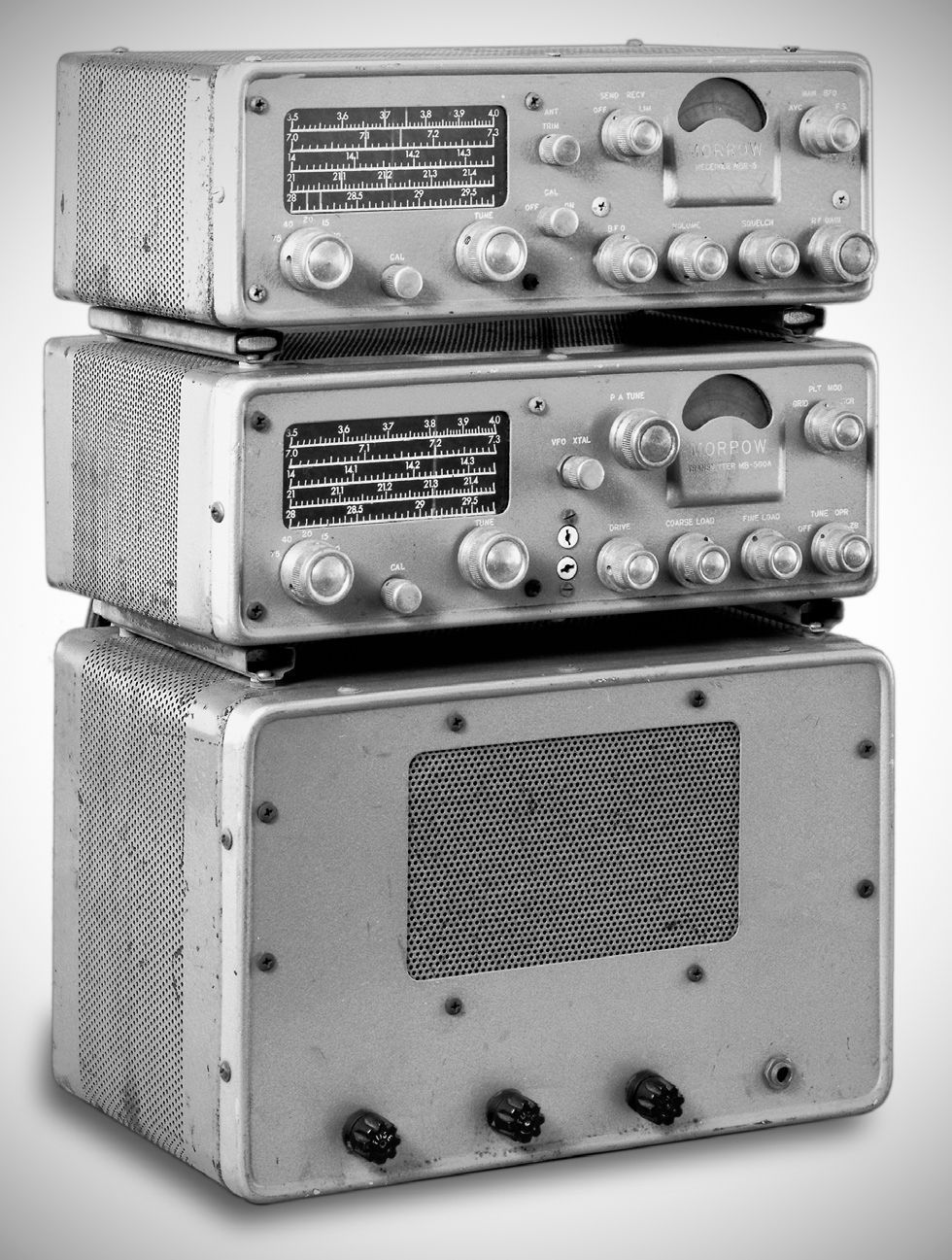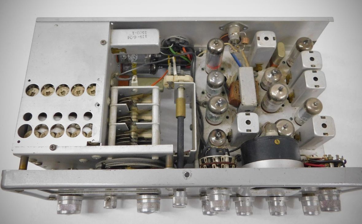 The 13-tube MBR-5 receiver covered the 80–10 meter amateur bands. The double-conversion set had IFs at 1525 and 200 kHz.