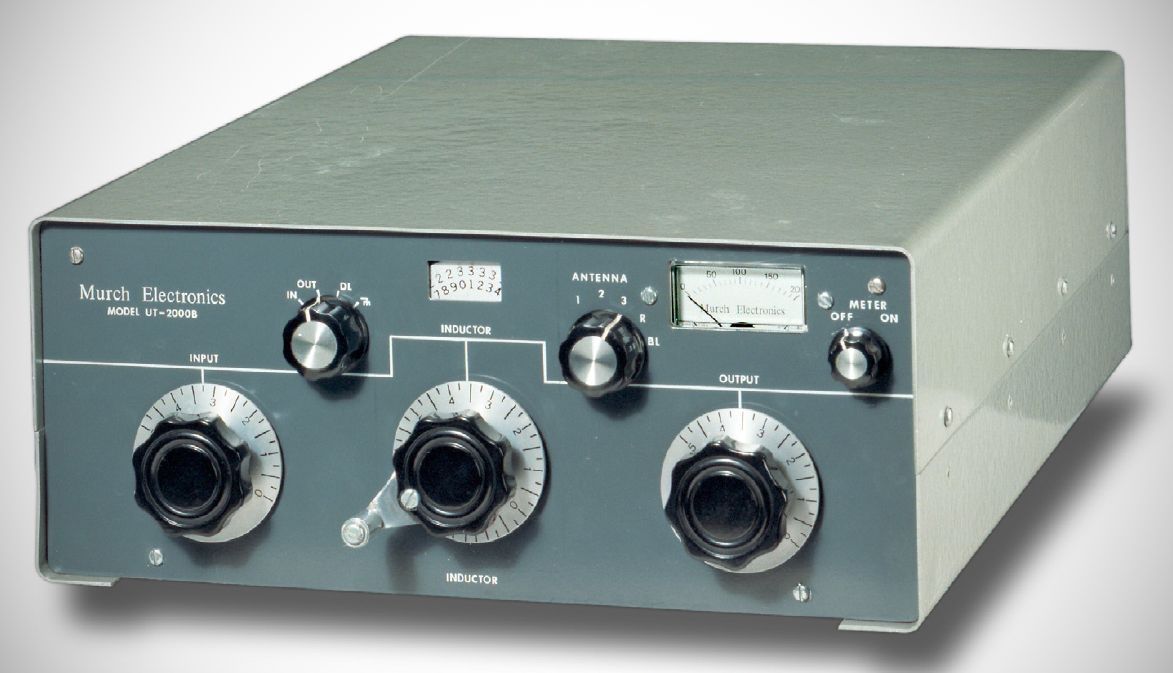 The early UT-2000 was an adaptation of Lew McCoy’s (W1ICP) Ultimate Transmatch design. It worked with coax-fed or random-wire antennas. The UT-2000B added a three-core balun for use with balanced lines. Coverage was continuous from 1.8–30 MHz and the tuner was rated at 2 KW PEP. The UT-2000B also included a built-in Monomatch circuit and relative power/SWR meter. Murch Electronics was located in Franklin, Maine. The company manufactured the roller inductor and capacitors used in the tuner.