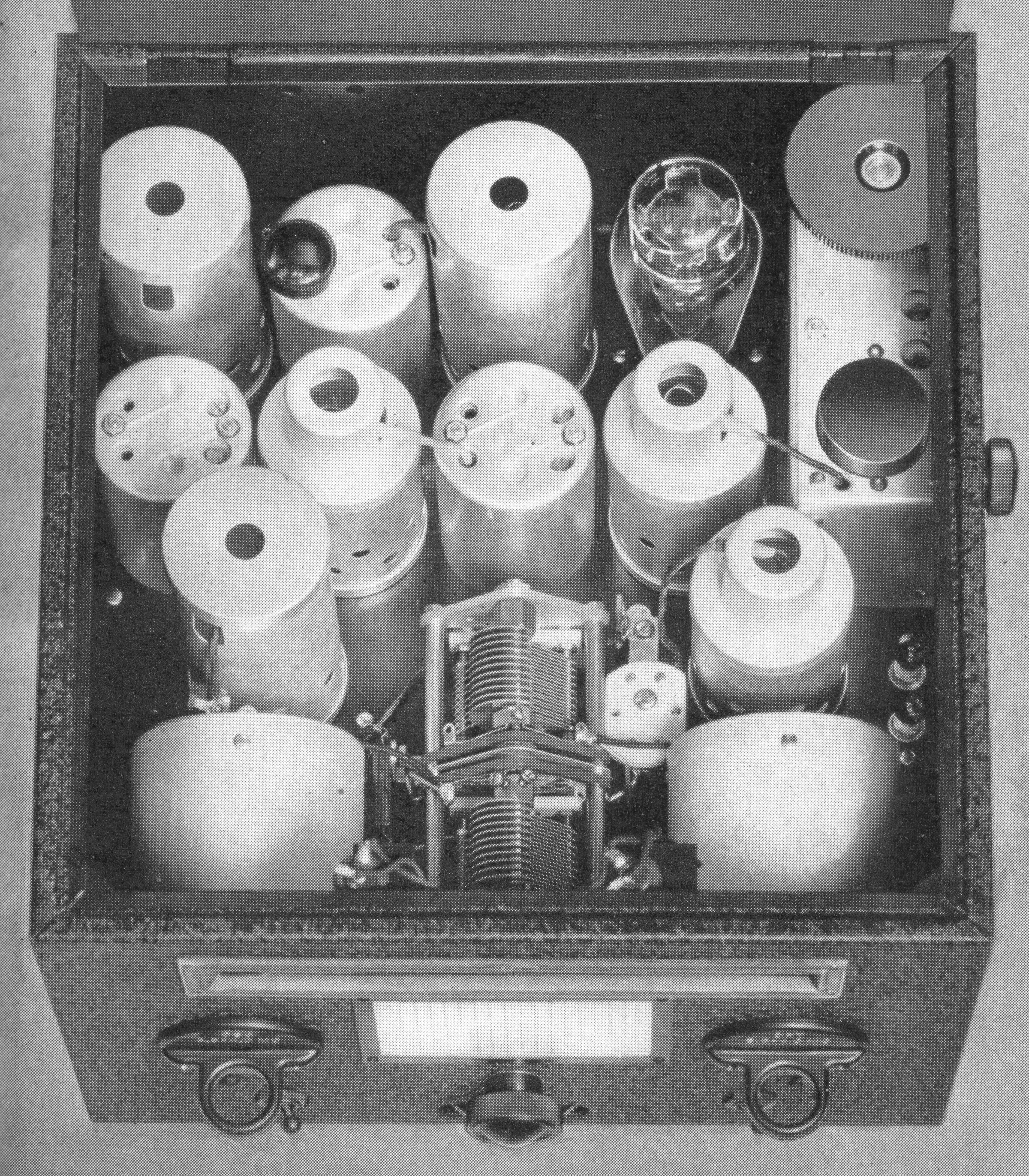 The FB-7 and FB-X were identical seven-tube receivers, except that the X model included a crystal filter in the 500 kHz IF. Standard plug-in coils provided continuous coverage from 1.5–20 MHz, and band spread coils were available for the 160, 80, 40, and 20 meter amateur bands. The "A" version of the receivers used air-variable capacitors versus mica-compression trimmers to tune the IF transformers.