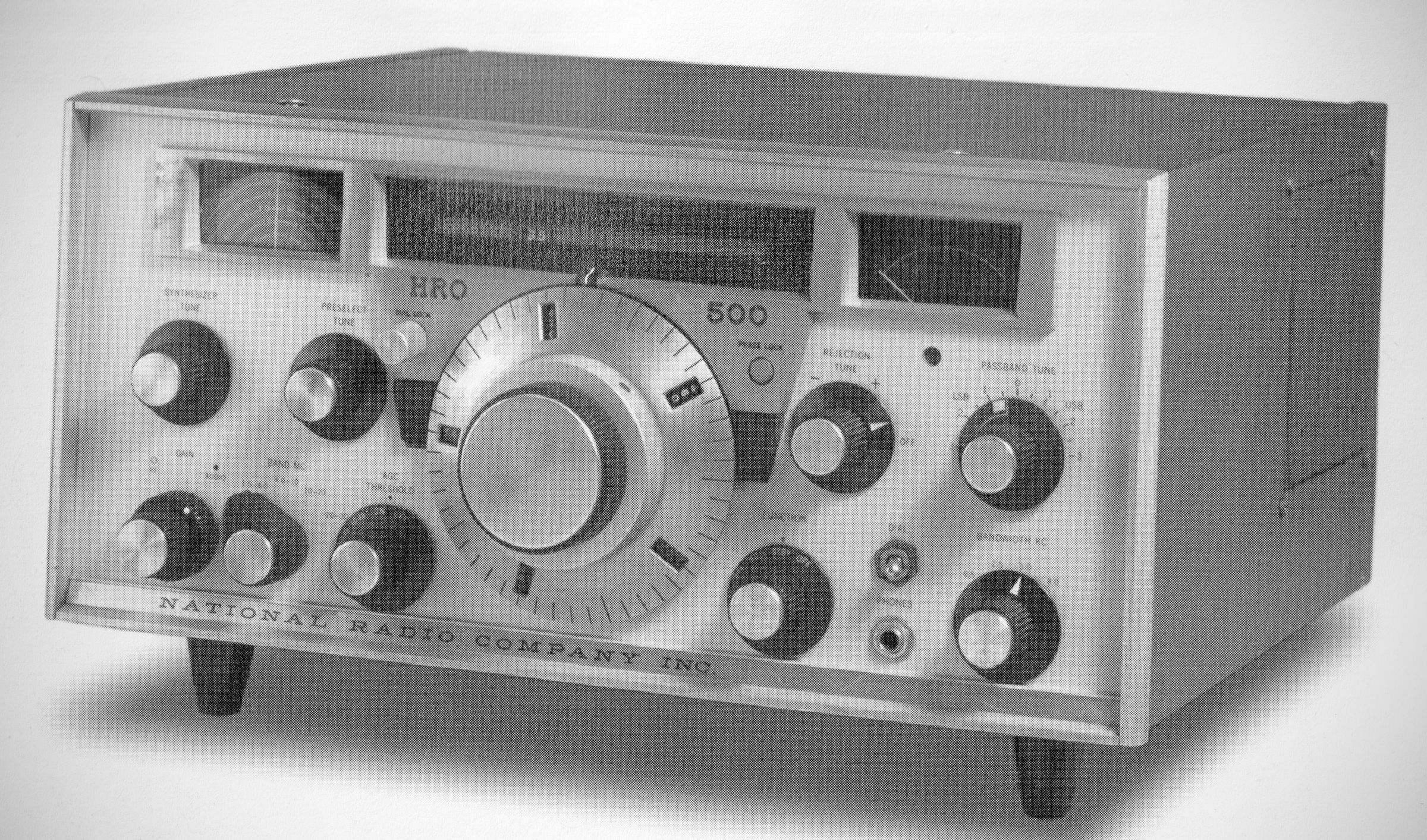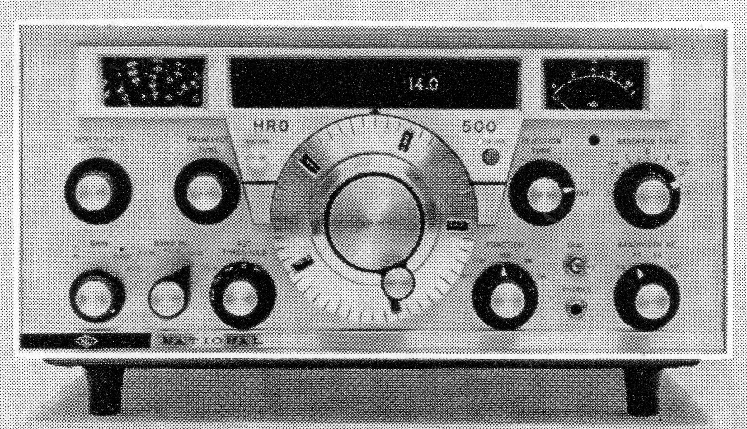 Three decades after the production of the first HRO model, National introduced their HR0-500. Only the trademark PW dial remained as a constant. Everything else about the famous receiver line had changed. The HR0-500 was all-solid-state and synthesized. It covered 5 kHz-30 MHz in sixty 500 kHz bands. The VFO's tuning rate was identical on all bands. A tunable six-pole filter provided selectivity bandwidths of 0.5, 2.5, 5.0, and 8.0 kHz. Passband tuning was used on the 0.5 and 2.5 kHz positions. Its rejection tuning featured a 60 dB notch. It operated from either 115/230 VAG or 12 VDC power; $1295.00, 1964. (1)