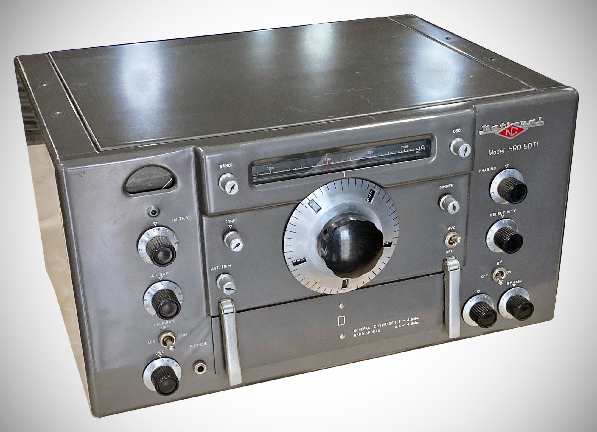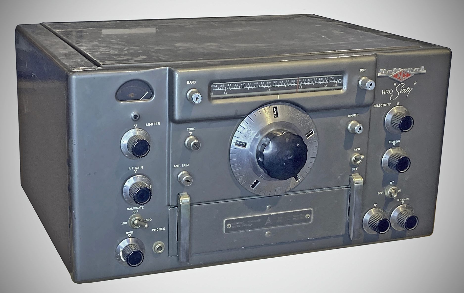 The HR0-60 was the final vacuum tube HRO. It broke new ground as the long-running receiver series continued to evolve. It introduced double conversion to the HRO line and used 18 tubes. Ten coils gave it a 50 kHz to 54 MHz tuning range. Matching speaker is the HRO-60TS (table top). Also available in rack mount as the HRO-60RS.