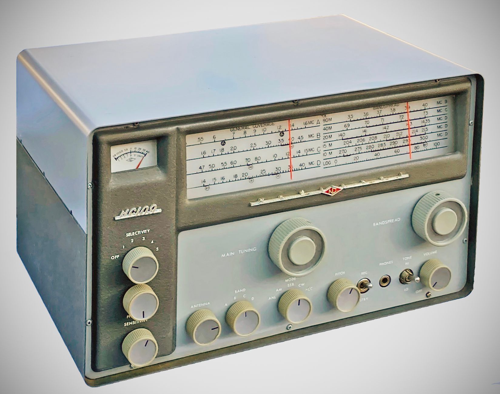 Features include a BFO, ANL, separate RF and AF gain control, BFO pitch, headphone jack, S-meter, antenna trimmer, a bandspread calibrated for the ham bands, two position tone control, mute, standby, and flywheel tuning. Requires external 3.2Ω speaker.