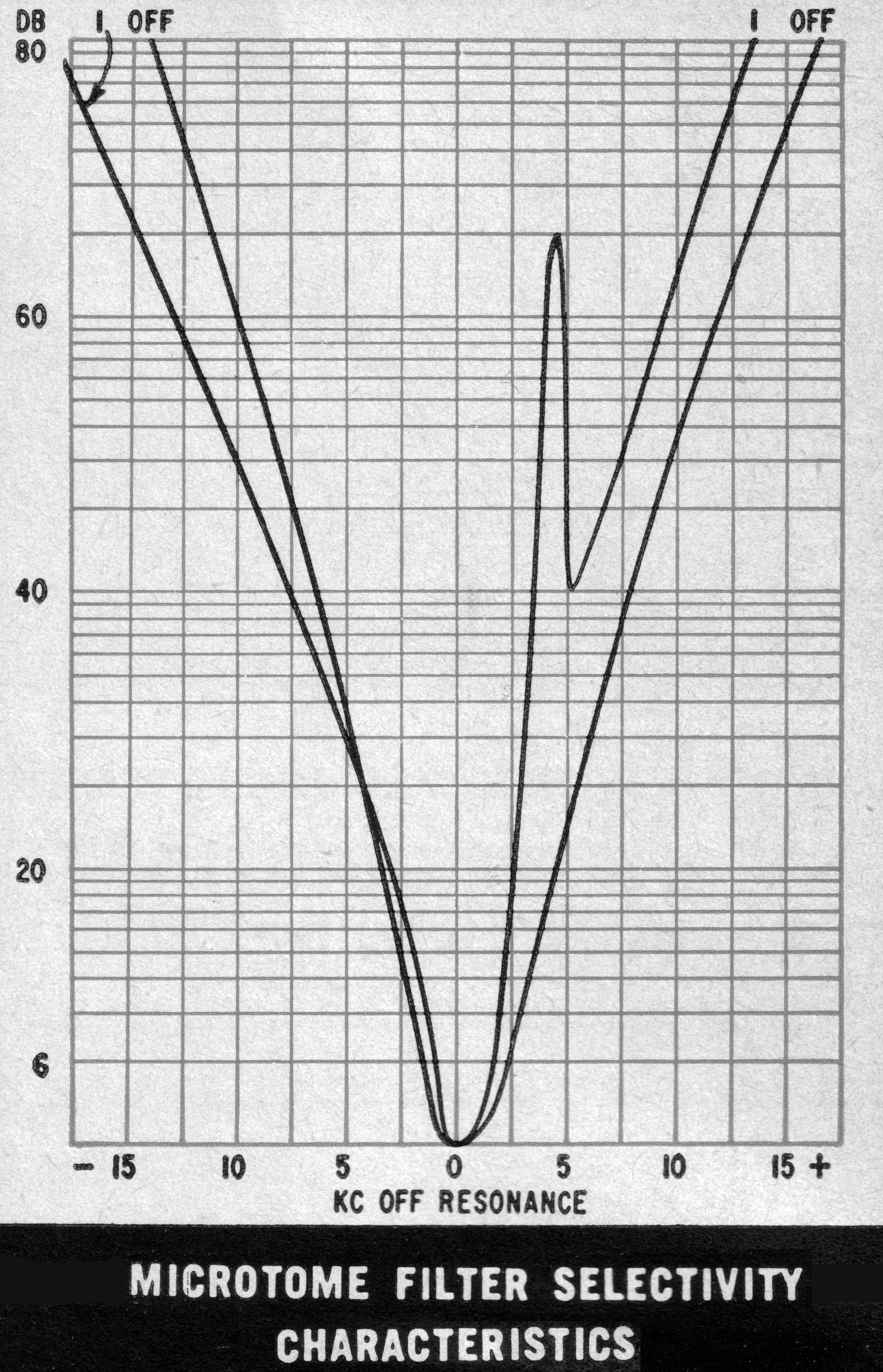 Selectivity in six steps from 200 to 5200 Hz. Sensitivity: better than 2 µV 10 db S/N.