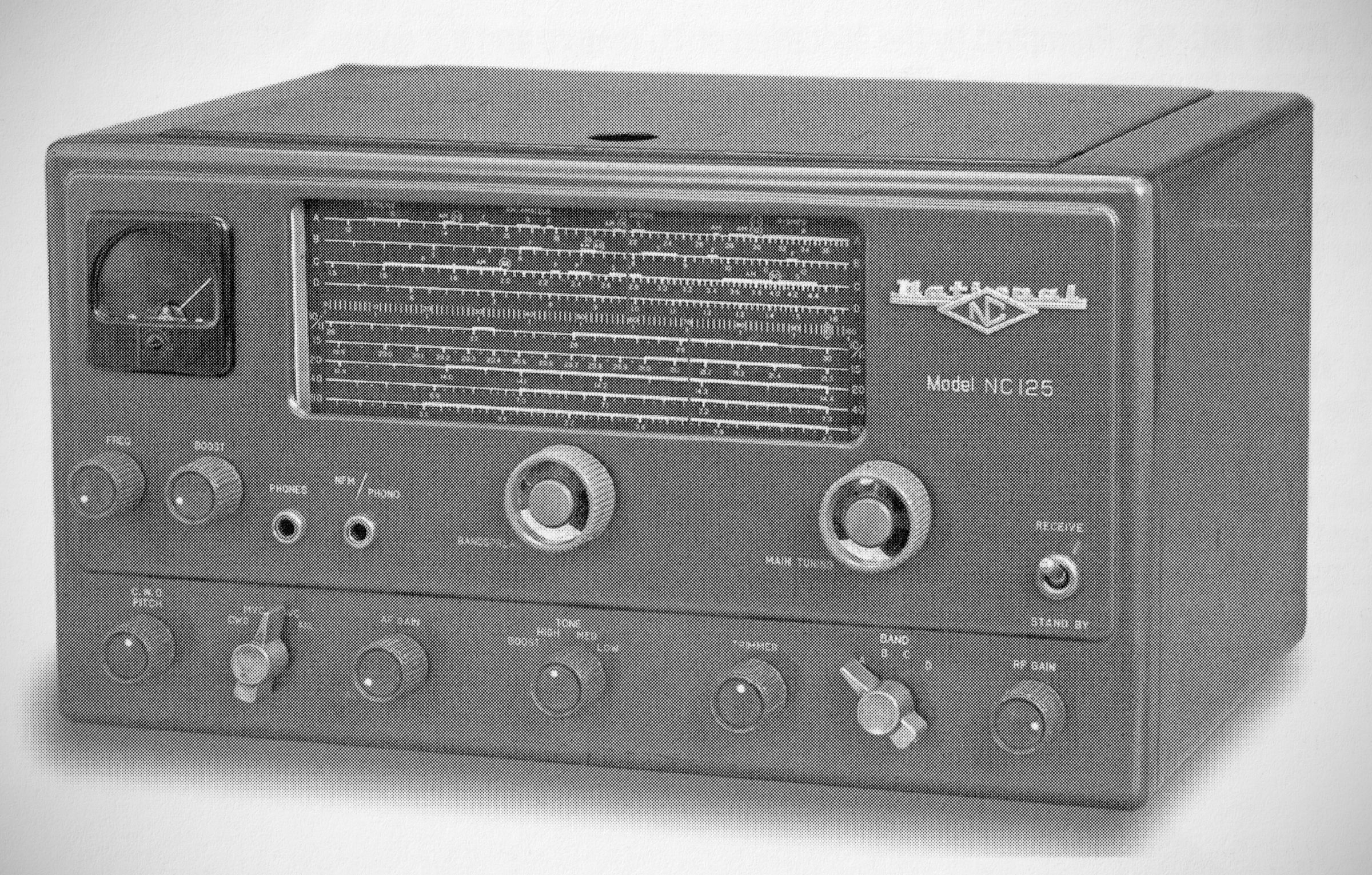 The National NC-125 covered 0.55-36 MHz in four bands. The 11-tube receiver had no IF filter but did include a built-in Select-0-Ject audio filter. It also had a noise limiter and a socket for an optional NBFM adapter.