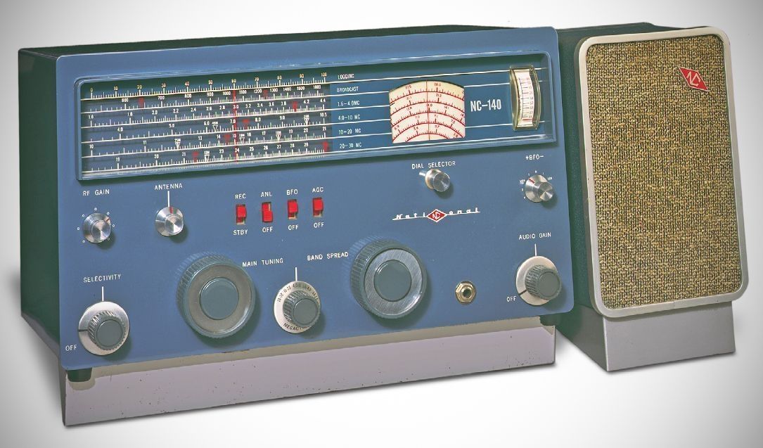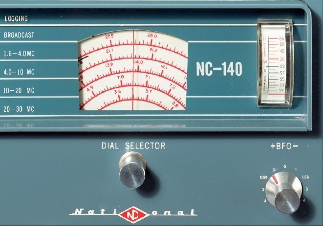 When the NC-140’s Dial Selector knob was pulled out and rotated a half-turn, the band-spread dial calibration changed from shortwave broadcast to amateur band frequencies, or vice versa. The general-coverage range of the receiver was 0.54–30 MHz in five bands. The eight-tube, double-conversion receiver used a Q-Multiplier in its 230 kHz second IF to aid selectivity.