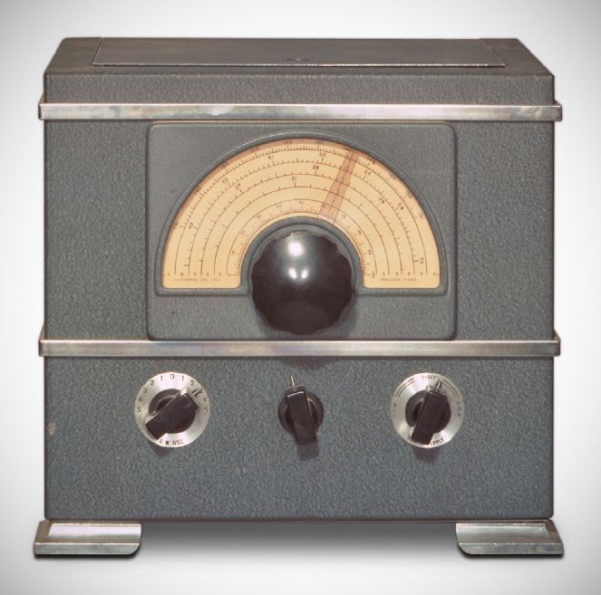 Little information is available on this interesting piece. It was paired with a National NC-2-40D receiver when photographed and mirrors that receiver’s style. It is not likely home brew but probably a long-forgotten prototype instead. The dial is calibrated for approximately 19.9–21.9, 26–30, 48.5–55, and 141–151 MHz.