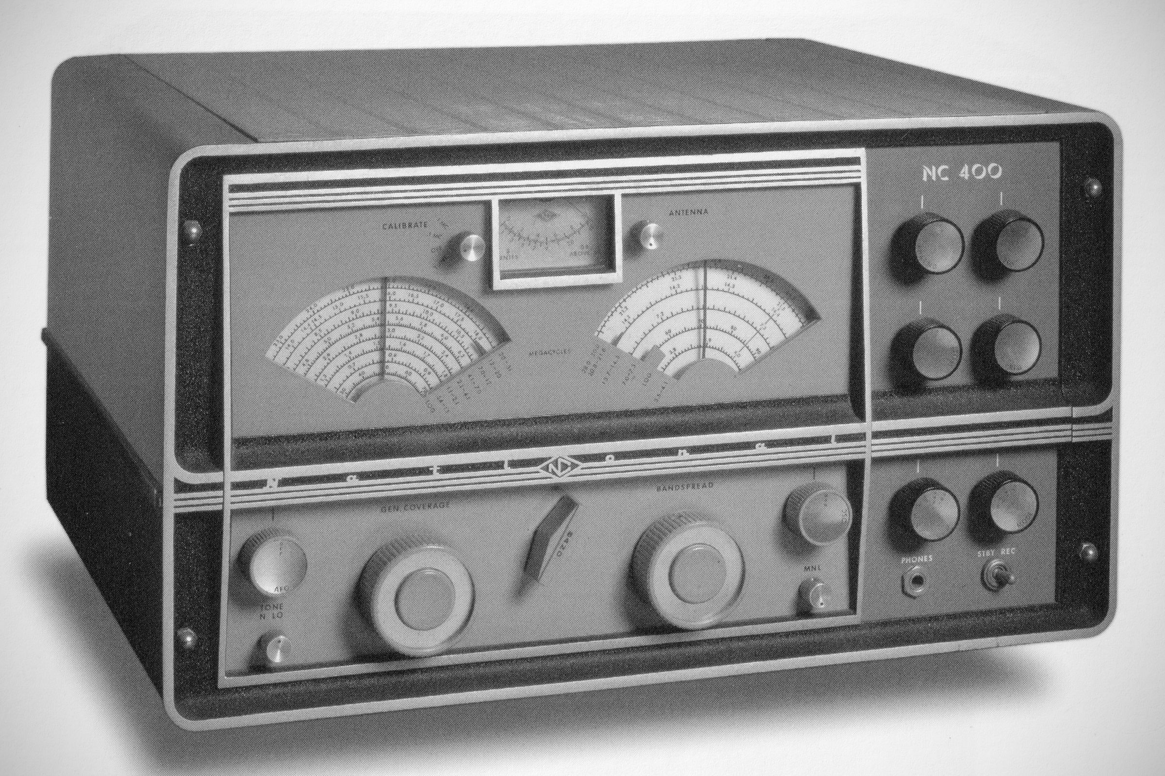 The NC-400 could be tuned manually or crystal-controlled on preset frequencies. It also had provisions to use an external frequency synthesizer. The band spread dial was calibrated for the 80-10 meter ham bands. The set used 18 tubes.