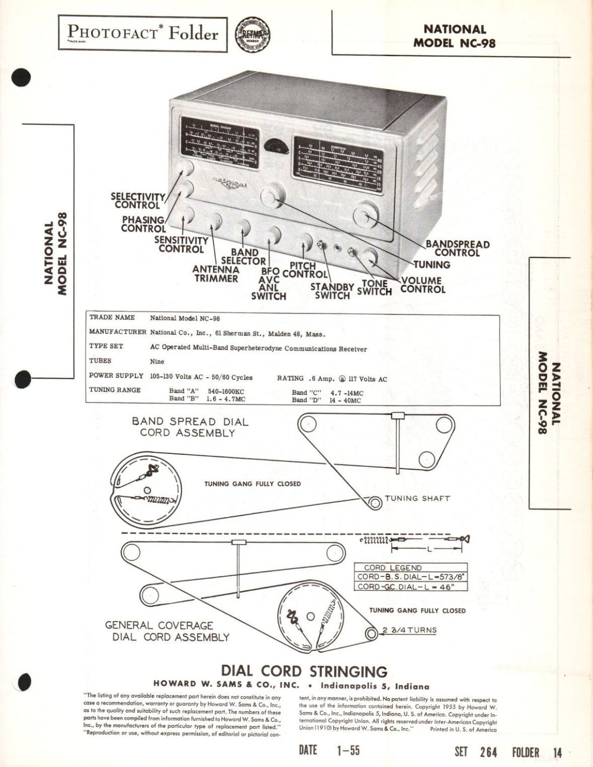 QST, Nov 1954, p. 160. (NC-98SW, with band spread for the 17, 19, 25, 31, and 41 meter bands.)