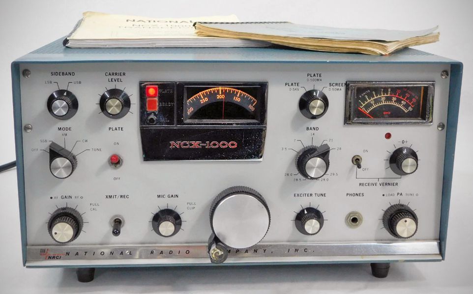 National's kilowatt transceiver sold for just less than a kilobuck. The NCX-1000 was all solid-state except for its driver and final. It was rated at 1000 watts PEP on SSB, 1000 watts DC on CW, and 500 watts on AM or RTIY. A pair of RCA 8122 tubes was used in the final. It covered 80-10 meters and the operator could use either sideband anywhere in this spectrum.
