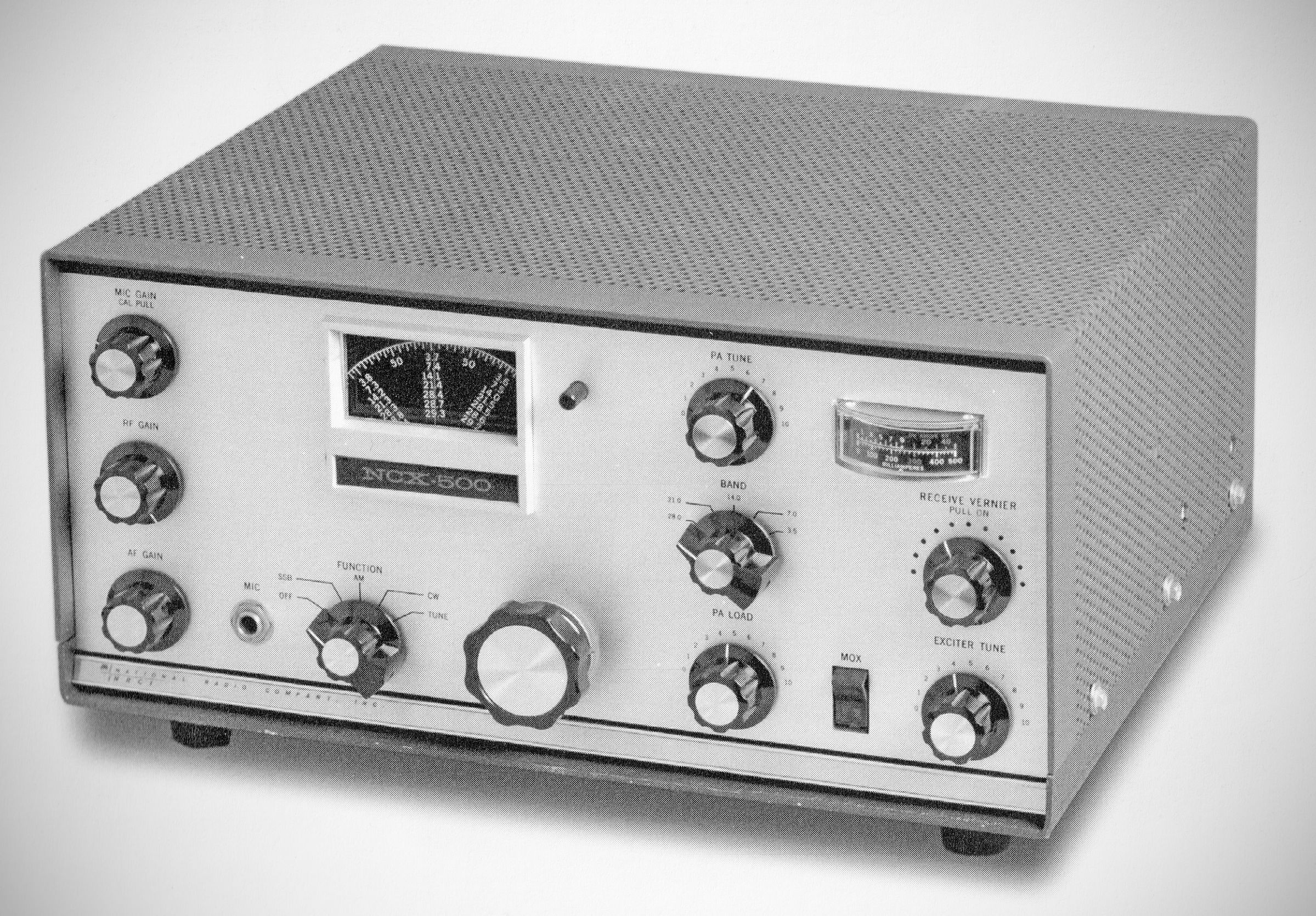 The NCX-500 was a full-featured transceiver produced after the National Company had become the National Radio Company, Incorporated (NRCI). The five-band transceiver ran 500 watts PEP on SSB, 360 watts on CW, and 125 watts on AM. The NCX-500 covered 80-10 meters, tuning each band in 600 kHz segments. Optional crystals were required for full coverage of 10 meters. Sideband selection was not available; the transceiver de-faulted to the customary sideband. It had RIT and was supplied with a universal mobile mount. The final amplifier was a pair of 6L06 tubes.