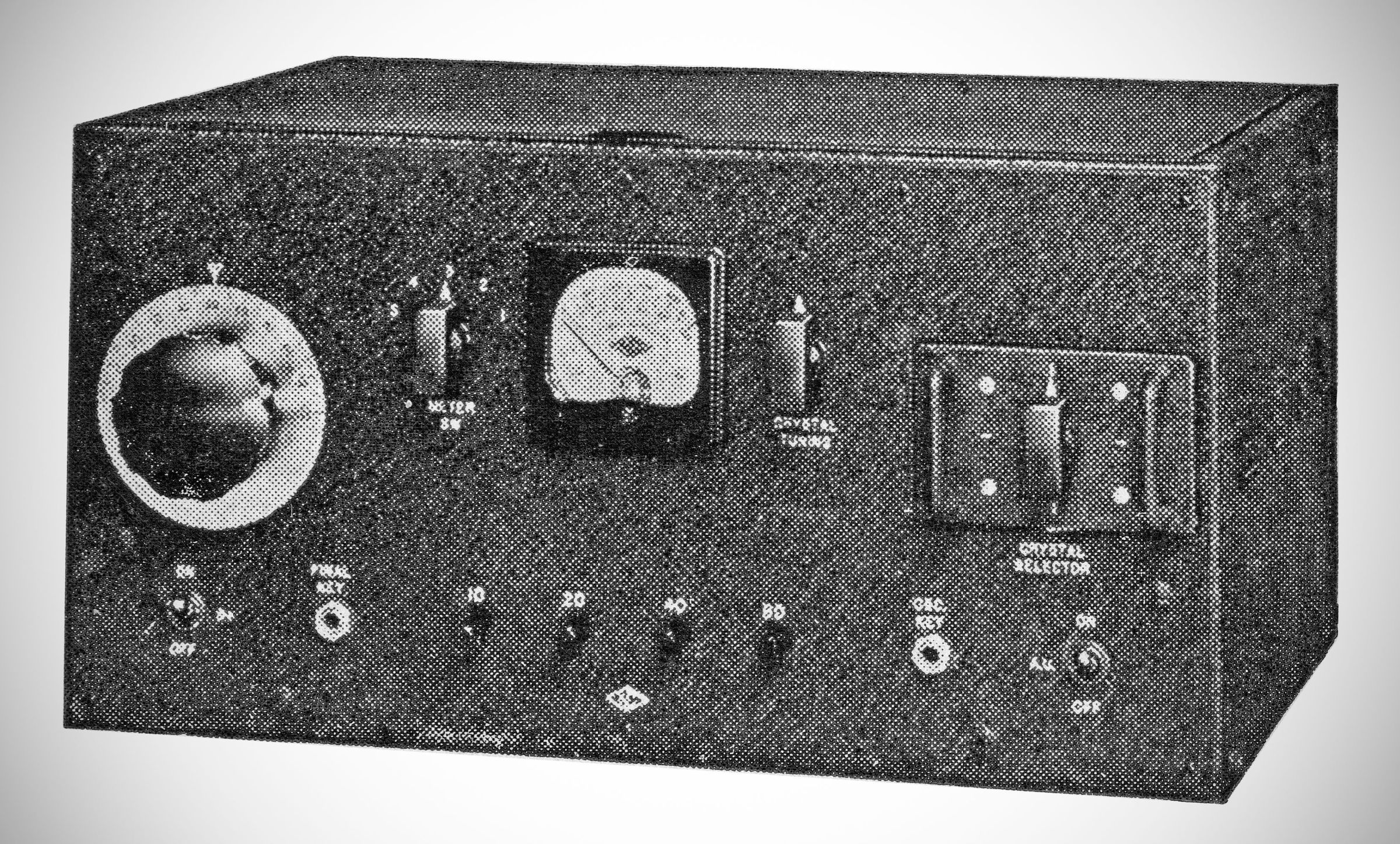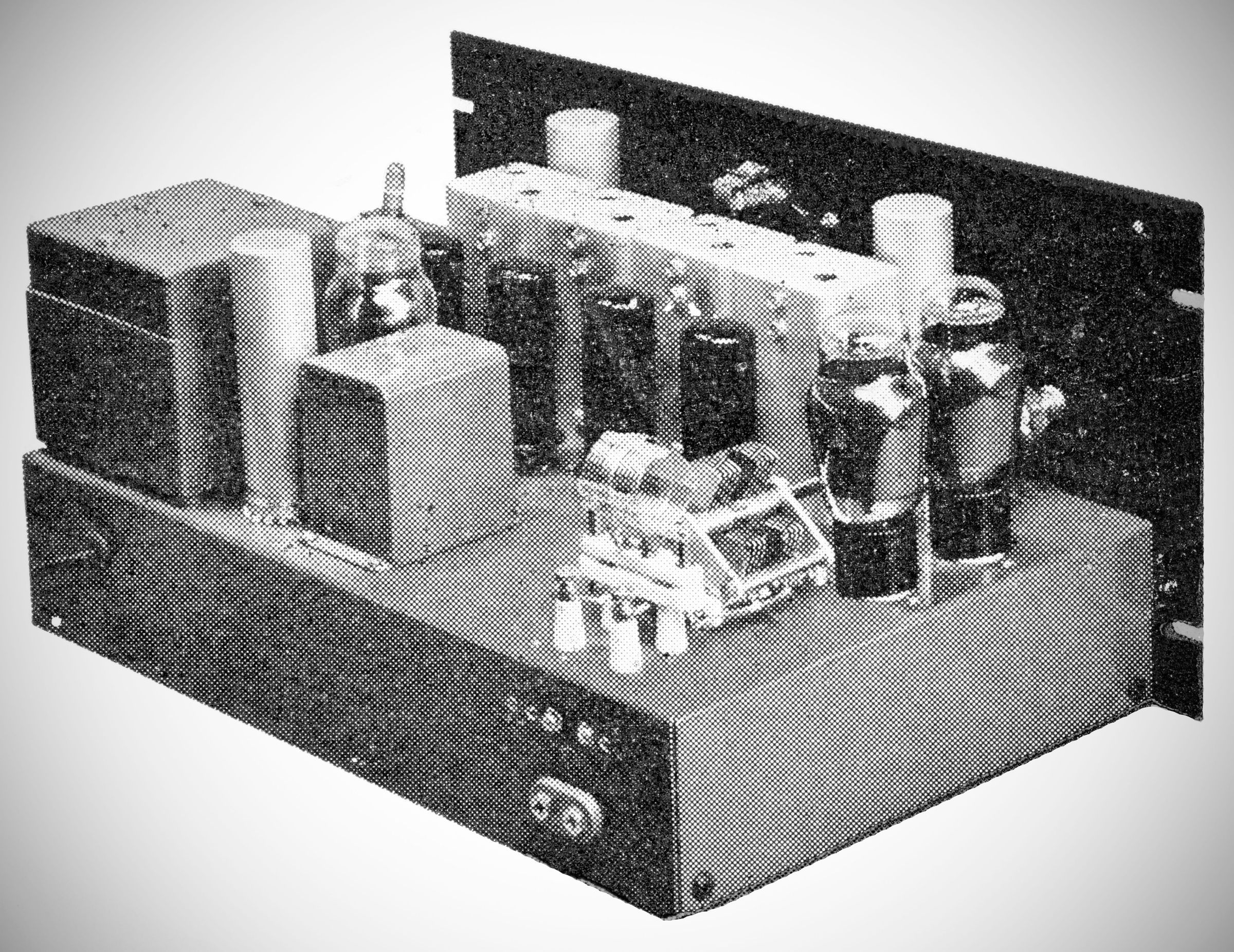 The NTX-30 provided 30 watts of crystal-controlled output on the 80 through 10 meter bands. A 6L6 oscillator operating on 80 meters drove a series of doubler 6L6s on the higher bands. A pair of 6L6Gs in parallel served as the final amplifier. It was a stand-alone CW transmitter that could be put into AM phone service with the addition of an external speech amplifier/modulator. Available in table top or rack mounting versions.