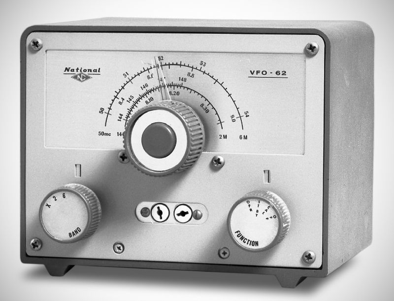 The VFO-62 contained a regulated power supply and had provisions for crystal control. In addition to scales for 6 and 2 meters, the VFO’s dial was also calibrated for its 8.33–9 and 8–8.33 MHz output ranges. A 6BH8 triode-pentode served as both an oscillator and cathode follower.