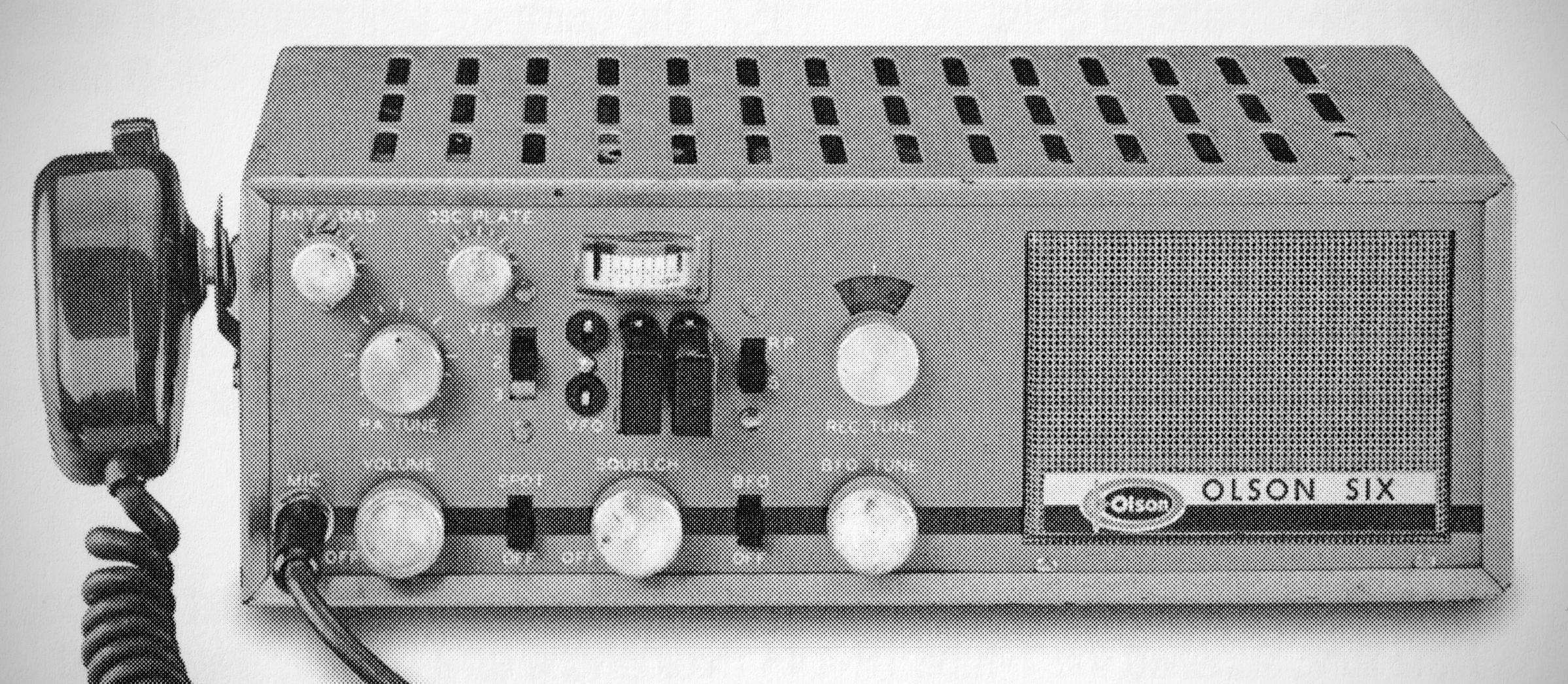 The Olson Six was one of the few pieces of ham gear sold by the electronics retailer. The Six (model RA-570) was made by Utica Communications and appears identical to that company's 650 model. The transceiver tuned from 50-52 MHz and its power supply operated from 117 VAC and 12 VDC sources. Its receiver was a double-conversion superhet. The 15 watt AM transmitter used a 2E26 in a Class C final.