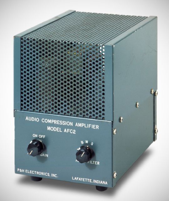 The P&H compressor-amplifier worked on both transmit and receive. It installed in the microphone line of a phone transmitter and prevented over-modulation by using broadcast-type compression. The AFC-2 also applied compression and band-pass filtering to received signals. It had a built-in power supply.
