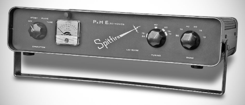 The LA-500-M “Spitfire”linear amplifierfrom P&H Electronics used six parallel 12JB6 tubes in grounded grid. Power input was 1000 watts PEP. It was advertised for mobile operation and had an optional DC supply, but a 115 VAC home-station supply was also available. Requires PS-1000 AV power supply, or PC-1000B DC power supply.