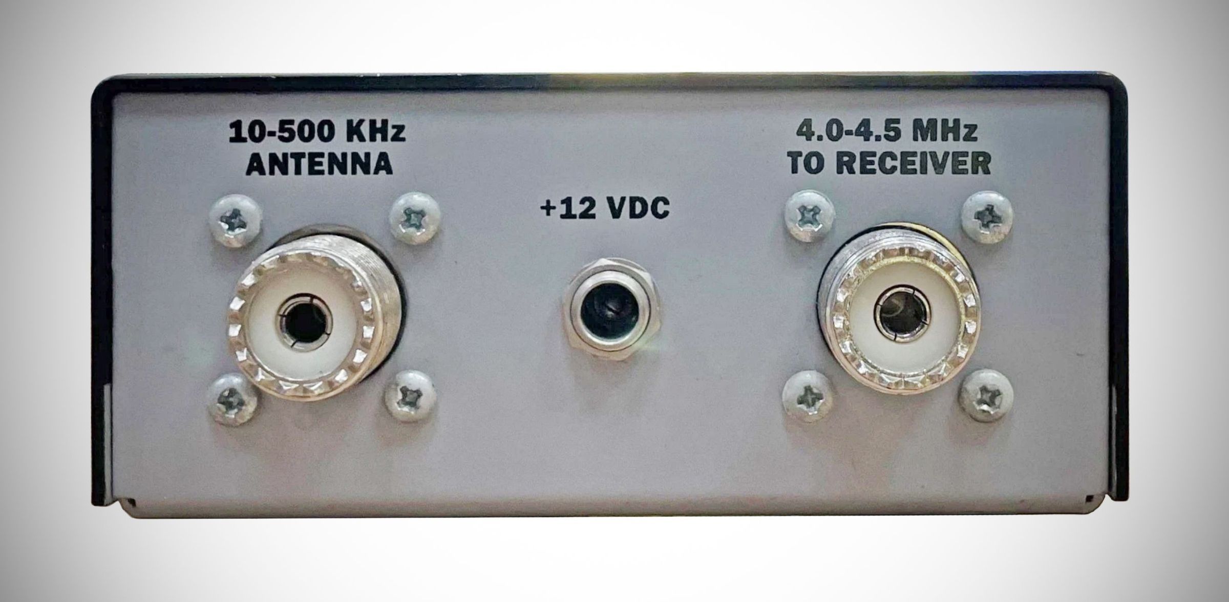There isn’t much to the Palomar VLF converter and that is one of its strong points. This little 2 × 4.25 × 4.25-inch unit is designed for the easiest installation possible. You connect your antenna to the SO-239 input, then attach a coaxial jumper between the converter output connector (another SO-239) and your radio. There is one switch on the front panel labeled ON and OFF, along with a green LED to indicate the ON state. The converter needs an Input of 12VDC.