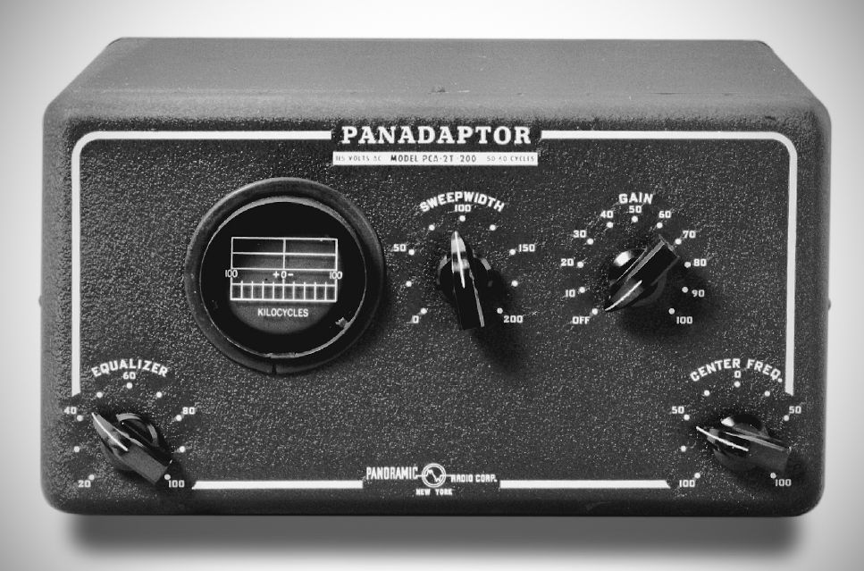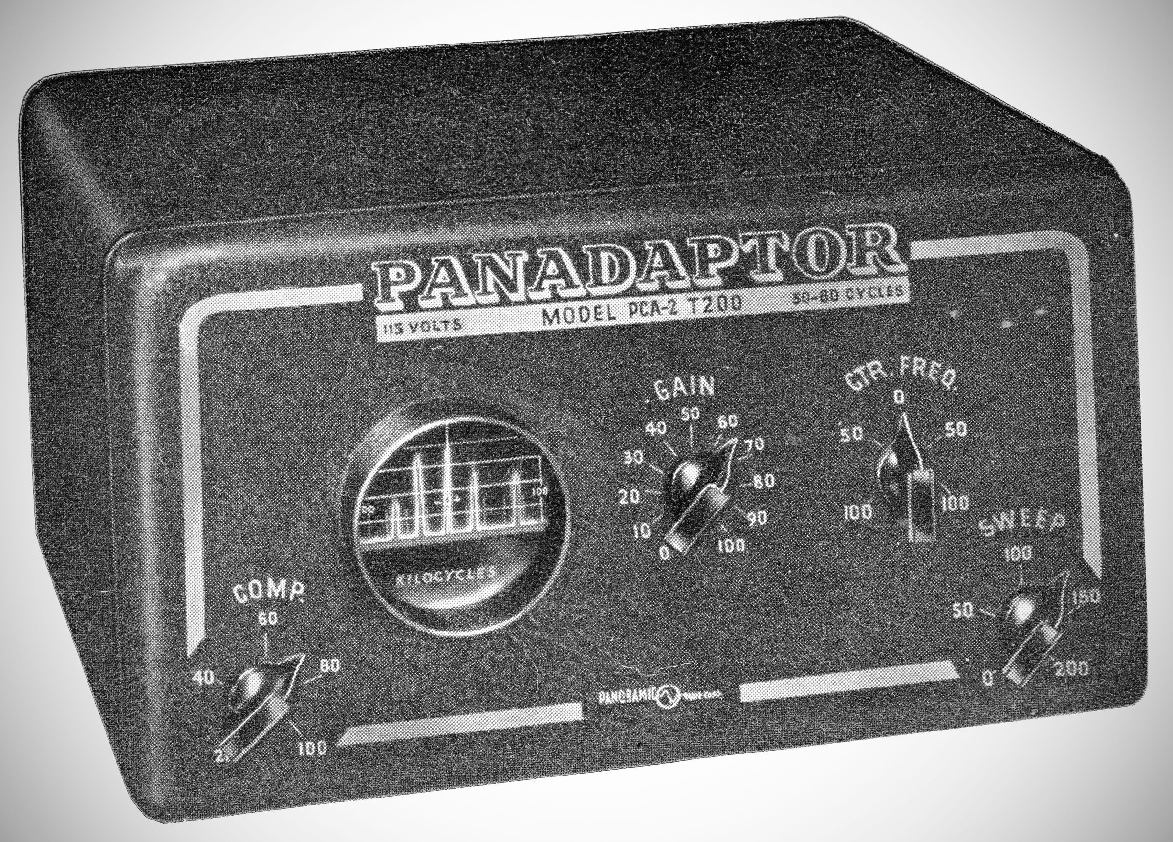 The PCA-2T200 panadaptor was manufactured by the Panoramic Radio Corporation of New York City. Its 2-inch scope displayed signals in a bandwidth of up to 200 kHz when connected to a receiver having an IF between 450 and 470 kHz. It could also be used to check the characteristics of just one AM, FM, or CW signal. It used 10 tubes and had an internal power supply.