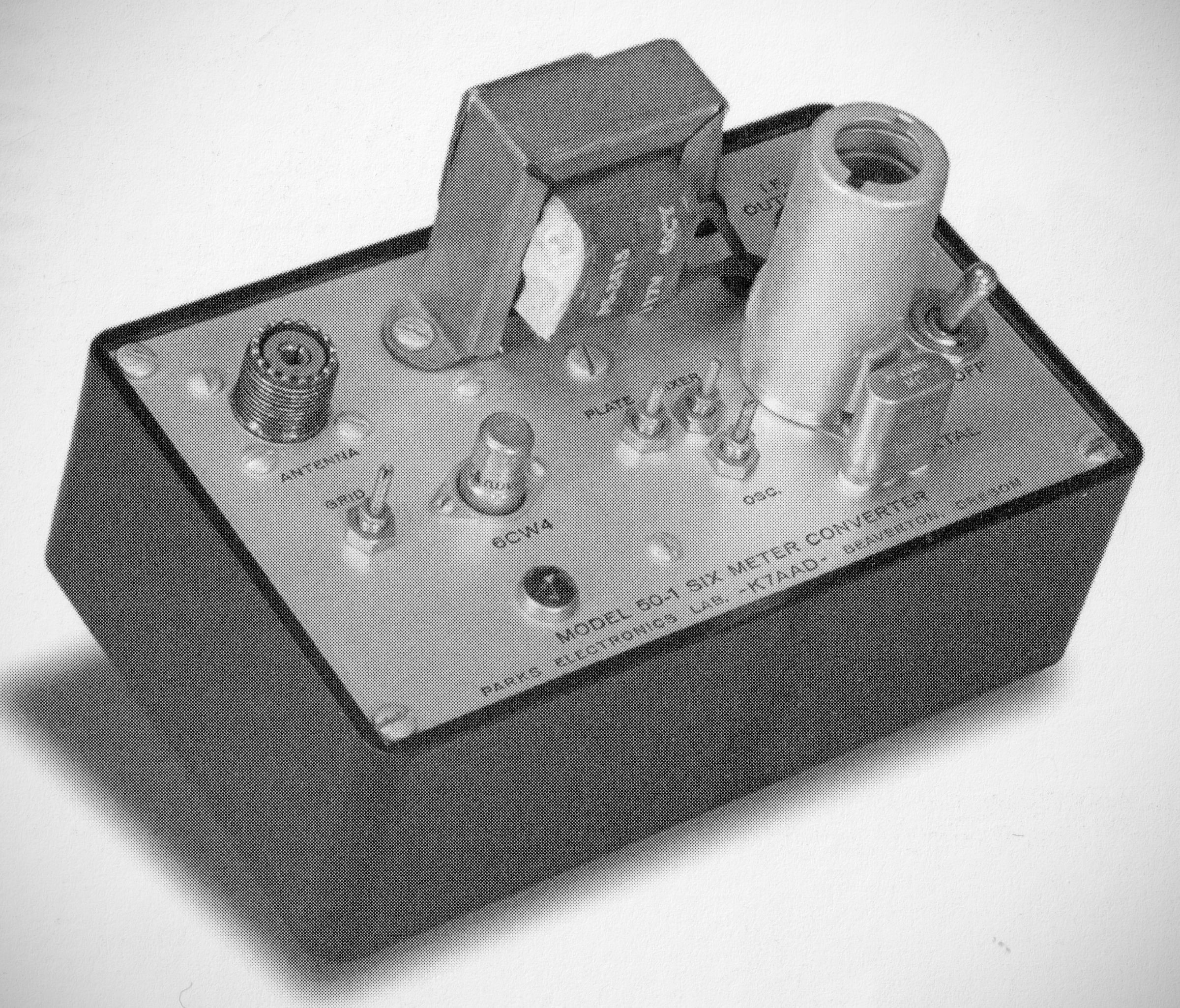 Parks Electronics of Beaverton, Oregon was run by K7AAD. He also published VHF'er Magazine. The company made pre-amps and converters for VHF and UHF. The 50-1 was a 6 meter converter and could be configured for a number of IF outputs. Its 117 VAC power supply was built in. The 50-1 could be tuned to cover a 1.5 MHz bandwidth.