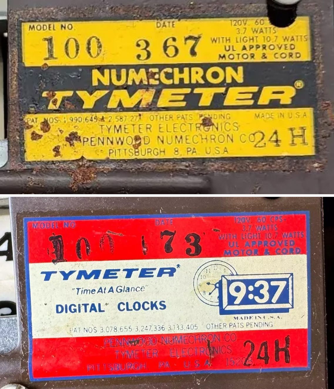Pennwood was one of there very first (if not the first) companies to offer a mechanical digital clock. The company's name quickly became Pennwood Numechron, and later the name "Tymeter Electronics" was added to the moniker. Today, the clocks are commonly referred to as Numechrons or Tymeters.