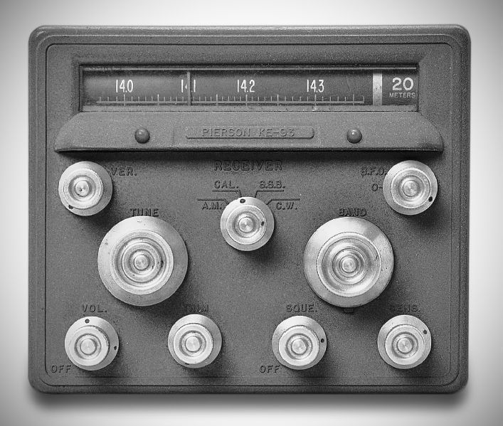The Pierson KE-93 receiver and its KE-93 110 VAC power supply were manufactured by Automation Electronics of Burbank, California. The power-supply cabinet also contained a speaker and an S-meter for the receiver.