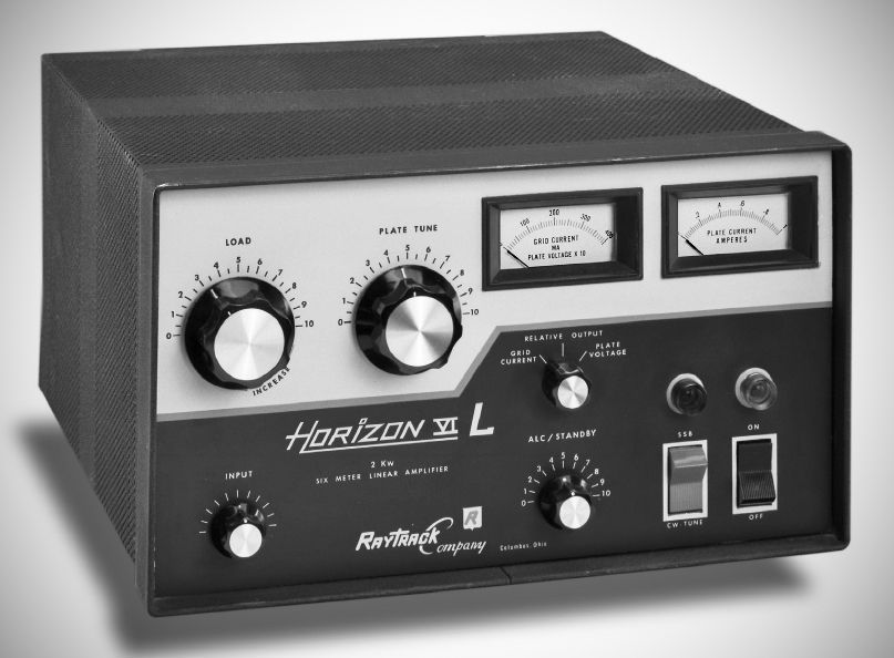The Raytrack Horizon VI-L linear amplifier used a pair of 3-500Z tubes in grounded grid. The 6 meter amp was rated at 2 KW PEP. Internal relays provided instant in/out switching for use with transceivers.