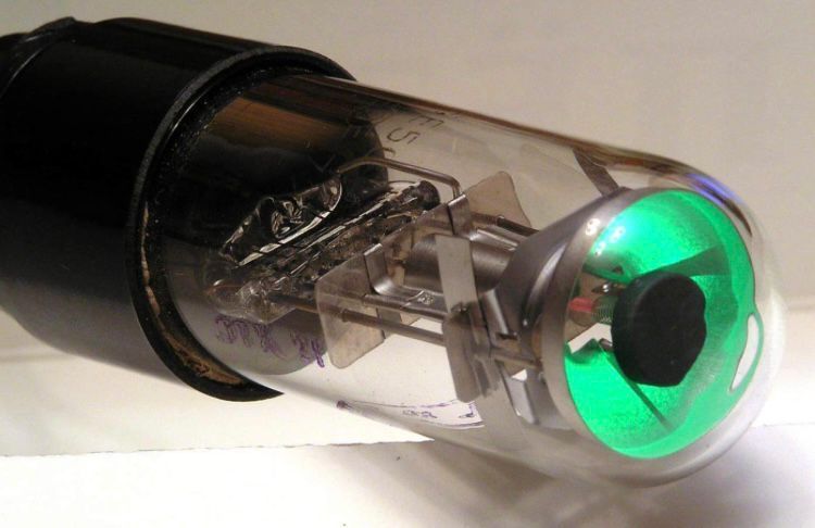 The 6E5 was the first of a long line of so-called "magic eye" tubes, released by RCA in 1935. Image: Chuck Penson, WA7ZZE, collection
