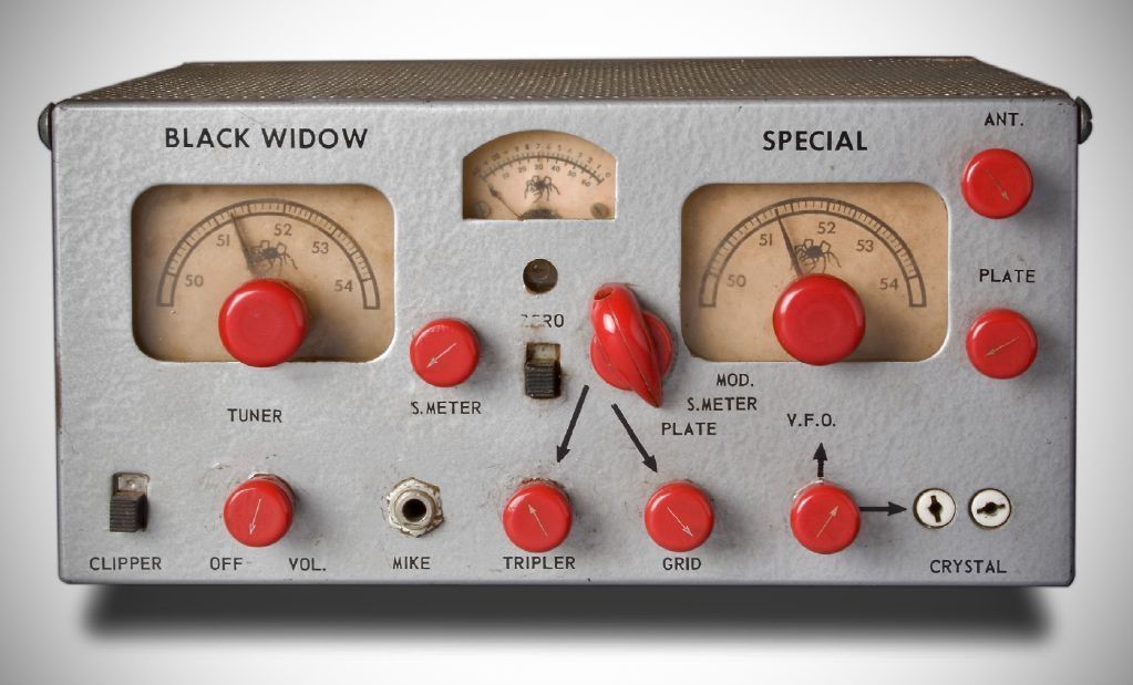 The Black Widow transceivers had already become a cult classic among Southern California VHF ops when they gained national distribution in 1957. The Compact sets produced 8 watts of plate-modulated AM. The TXR10-CQ was the 6 meter model. The TXR-9 covered 2 meters.