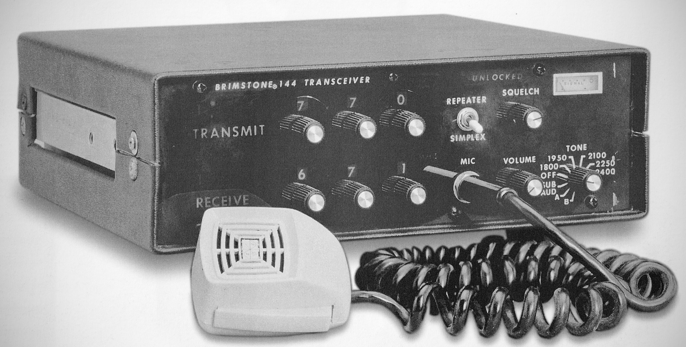 The oddly-named FM transceiver tuned from 143.00 to 149.99 MHz in 10 kHz synthesized steps (optionally 5 kHz). Power output was 25 watts and other options included plug-in modules for Touch Tone®, tone burst, and subaudible tones.