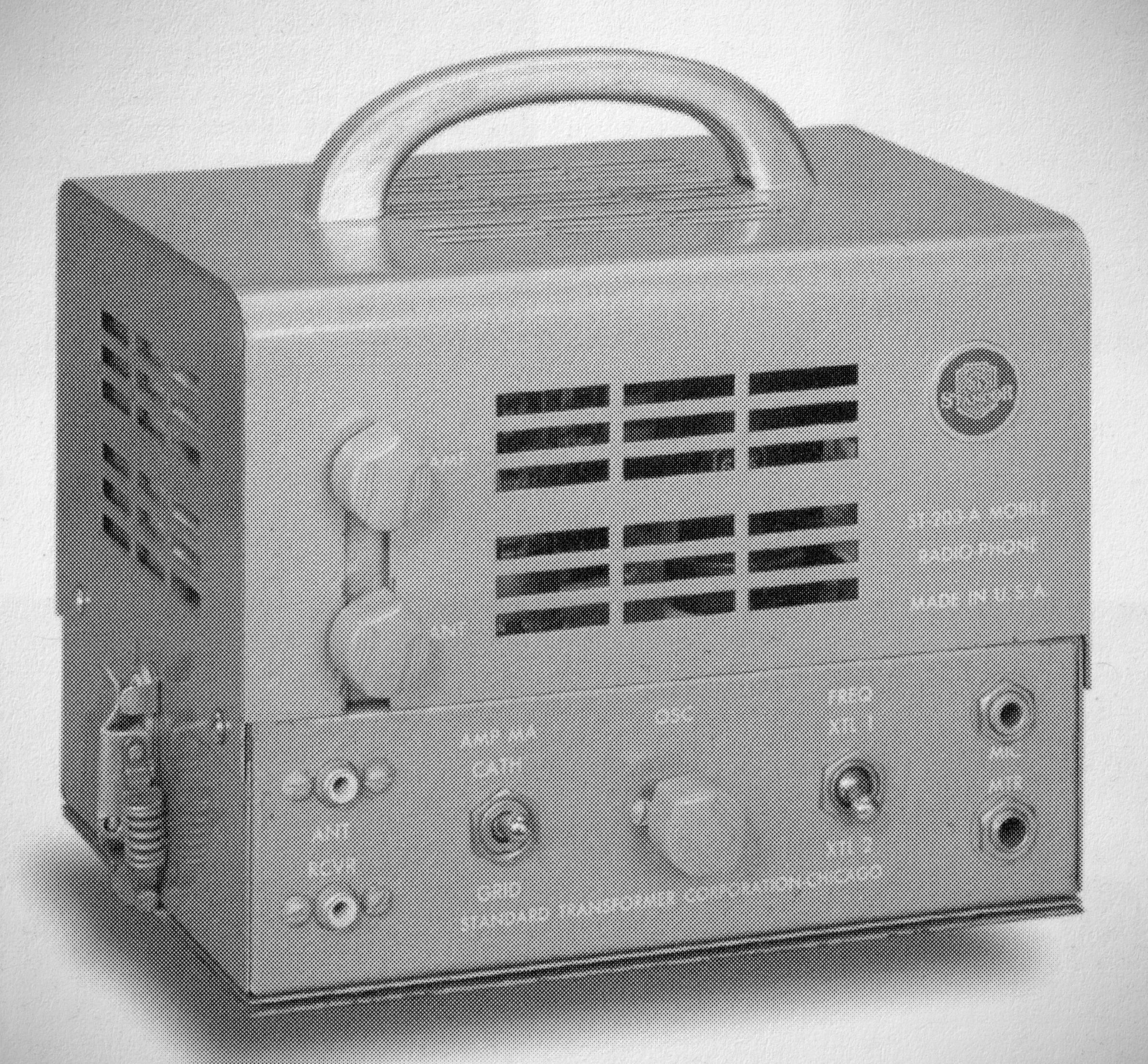 The ST-203-A was intended primarily for AM mobile operation but could be used in a home station as well. The transmitter covered 10-11 meters. However, conversion kits were available for 75, 40, and 20. Input power to the 2E26 final was about 27 watts. Power for mobile use could be obtained from a vibrator supply or dynamotor (remember, this is 1948) or from an AC supply in a fixed station.