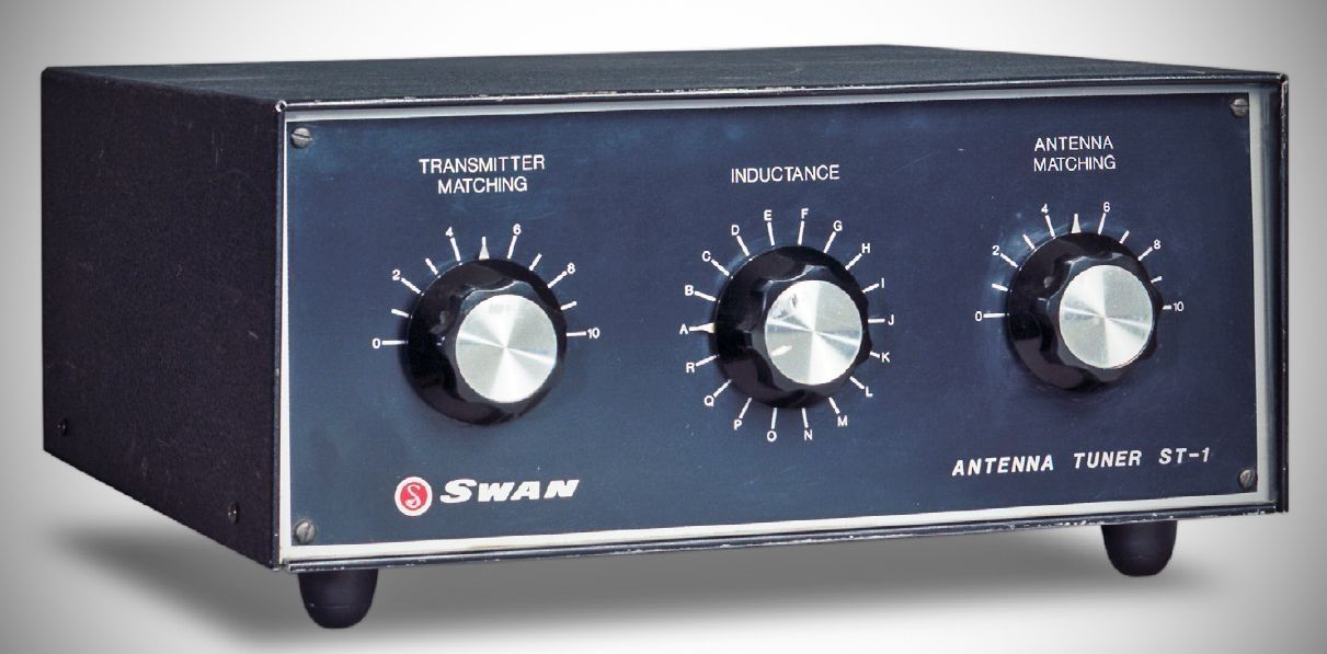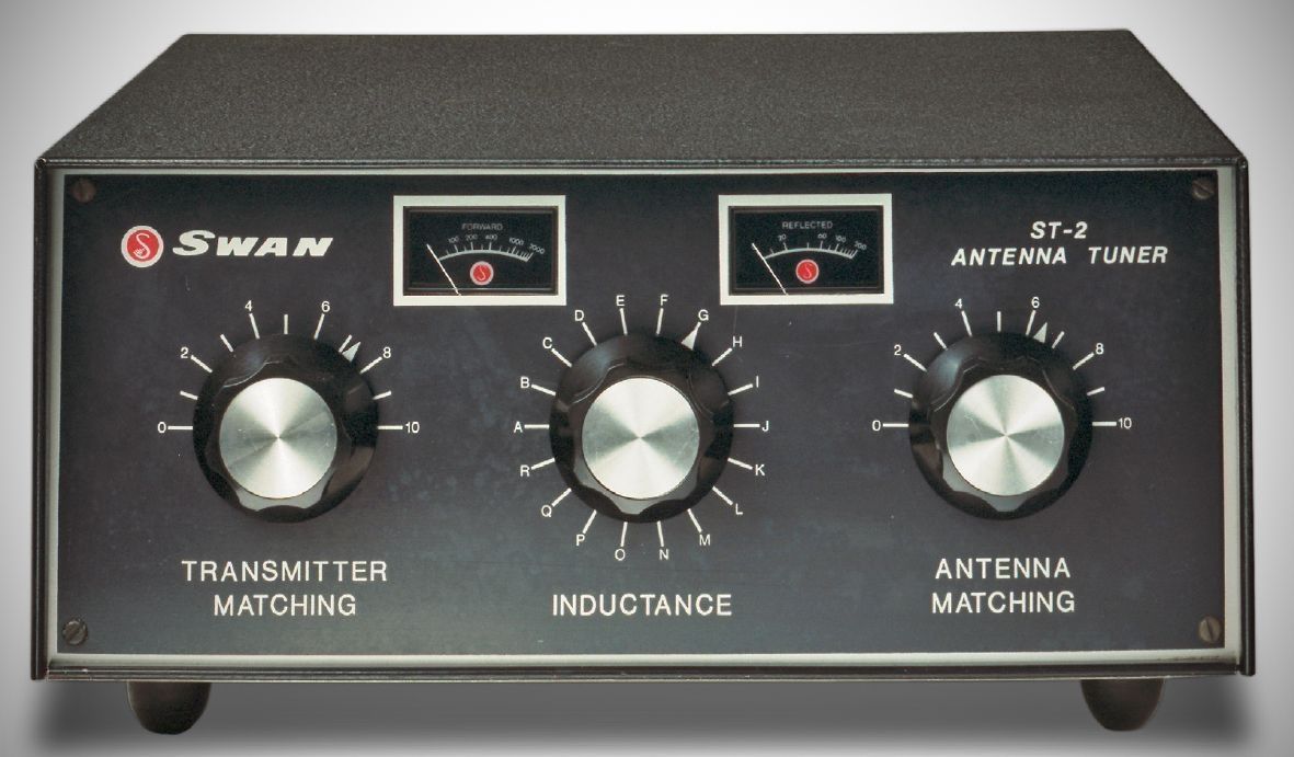 The ST-1 antenna tuner handled 3 KW PEP and provided 50 ohm matching from 1.7 to 30 MHz. It also had a 4:1 balun and connectors for balanced transmission lines. The ST-1 lacked a built-in SWR bridge and watt meter. Swan’s ST-2 tuner offered those features.