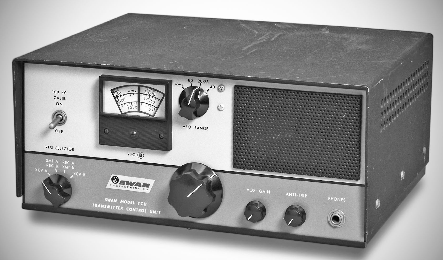 The Swan TCU provided separate transmit and receive frequency control when used with the SW-240. In addition, it gave full coverage of the 80 meter CW band, allowed 15 MHz WWV reception, and incorporated VOX operation for the SW-240.