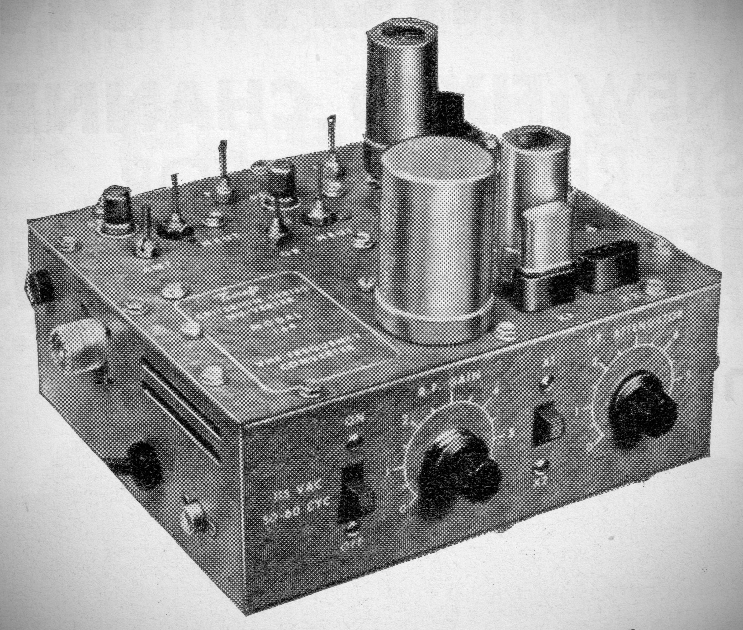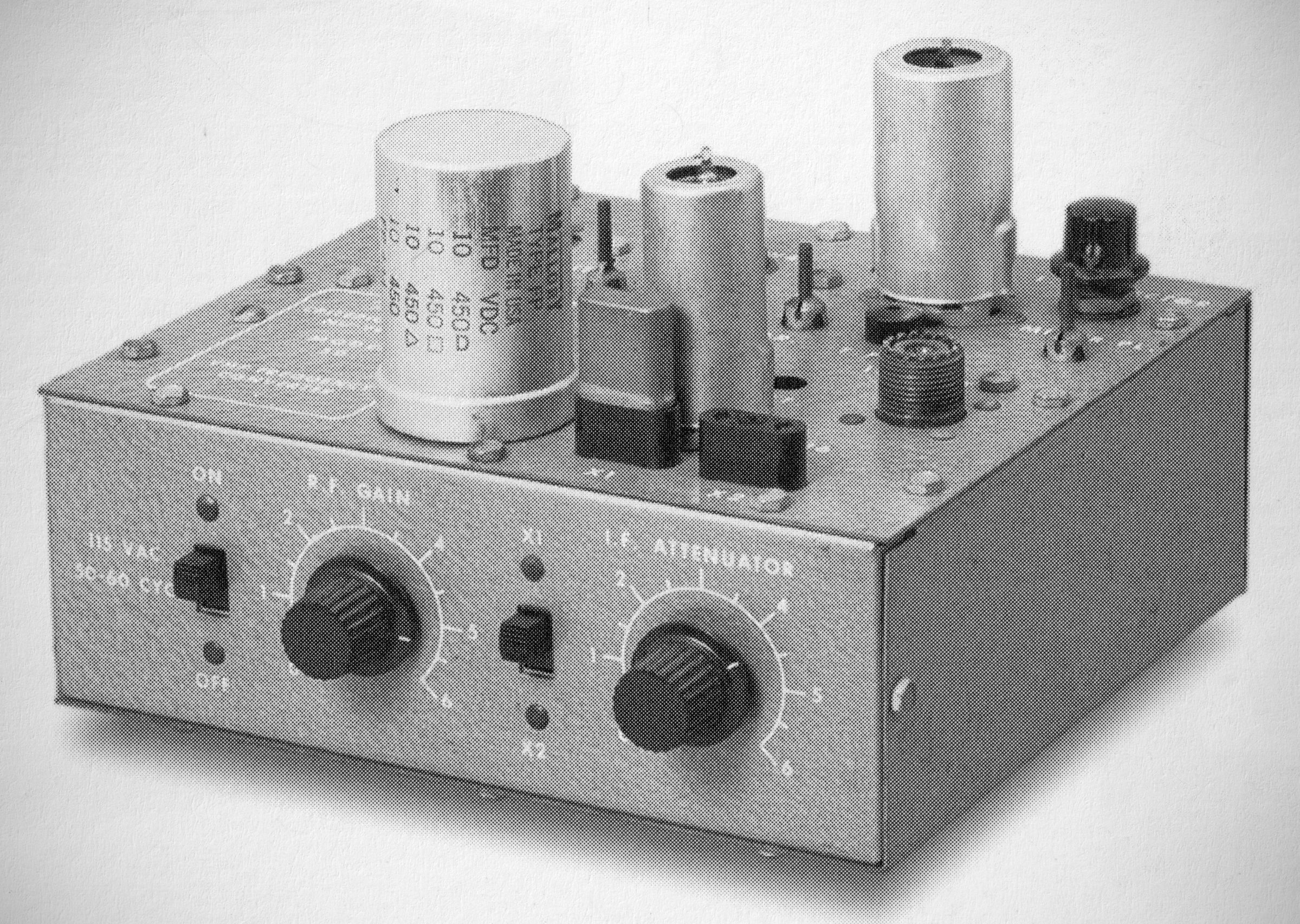 Tecraft made their Criterion series of converters for the 50, 144, and 220 MHz bands. They offered the operator management of input and output signal levels and the converter's gain could also be controlled by the receiver's AVC. The six meter model shown here could use any IF from 6-30.5 MHz. The converters had sockets for two heterodyne crystals. The power supply was built in.