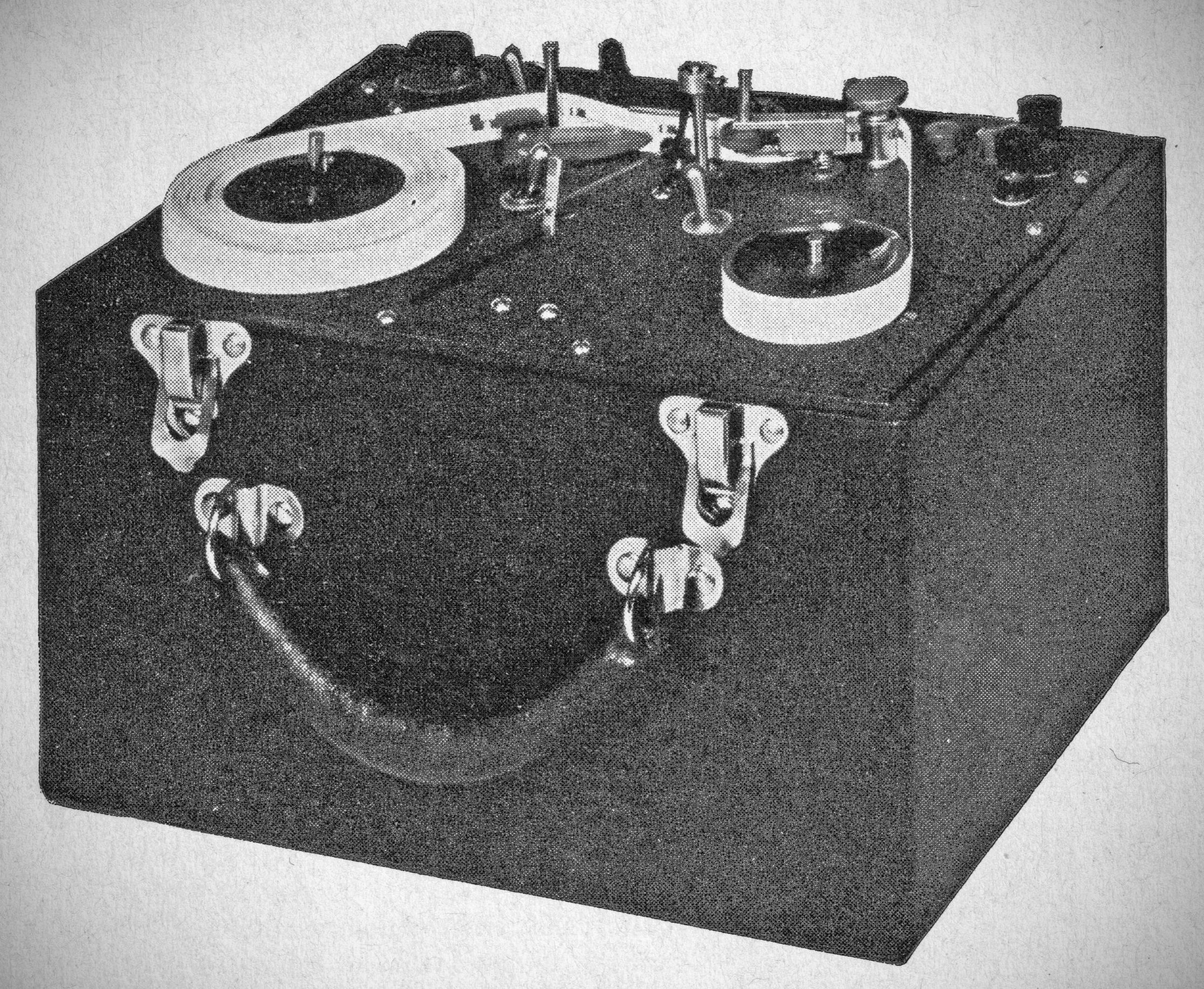 This fully electric version more closely resembles an Instructograph. The Handbook ad says, "no perforations, no ink," while the QST ad reads "records your sending visibly by a brand new method on a specially prepared tape..."
