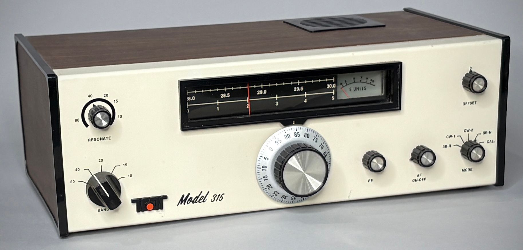 The Ten-Tec 315 amateur band receiver used all-solid-state circuitry. MOSFETs were used in the RF amplifier and mixer stages. A 9 MHz crystal lattice filter provided SSB selectivity and an optional active audio filter was used for CW. The audio filter had an 800 Hz center frequency and adjustable skirts. The receiver had rear-panel inputs for sidetone and T/R muting. Output jacks for the VFO and carrier oscillator enabled the 315 to transceive with a companion transmitter.