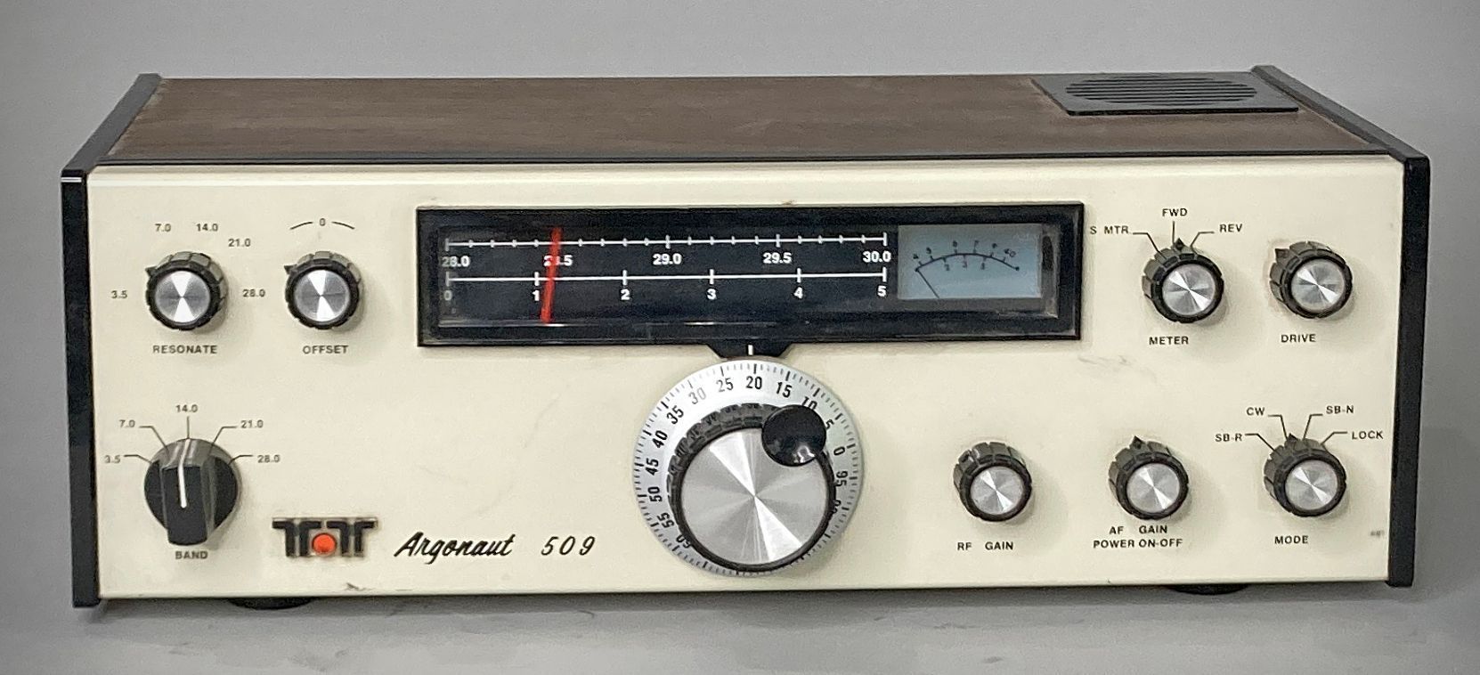 The Ten-Tec model 509 arrived in 1976. It retained the basic flavor of the original Argonaut, with its QSK CW, no-tune broad-band amp, built-in SWR/S-meter, RIT, and direct frequency readout.