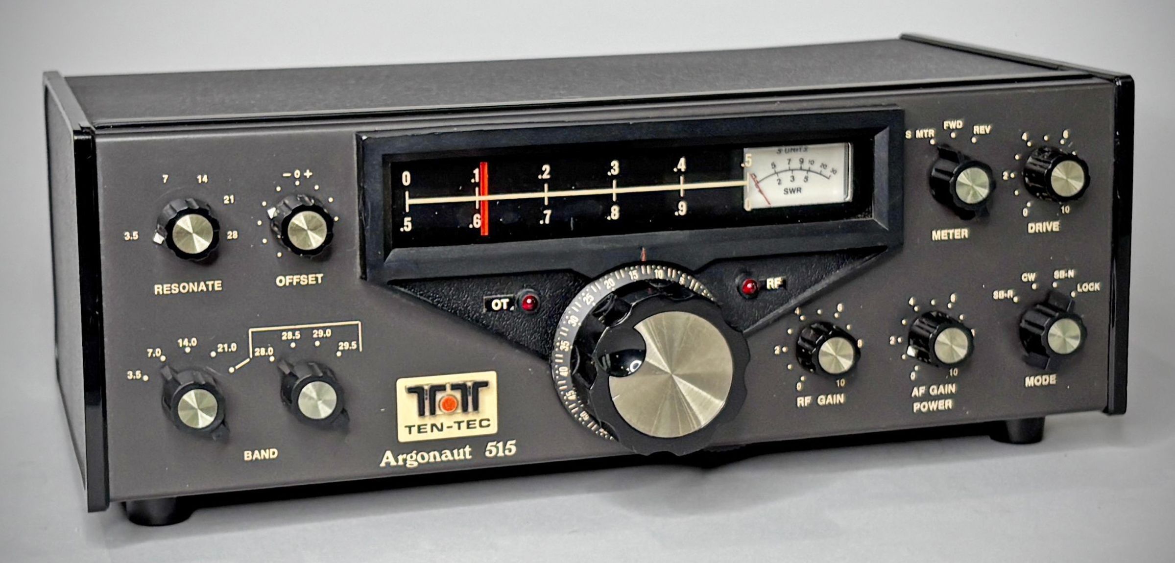 Ten-Tec restyled the Argonaut cosmetically, adding new features as well. The Model 515 now covered all of 10 meters with new 500 kHz band segments. Offset tuning and RF LEDs were added to the front panel. The PTO and receiver front end were both improved.