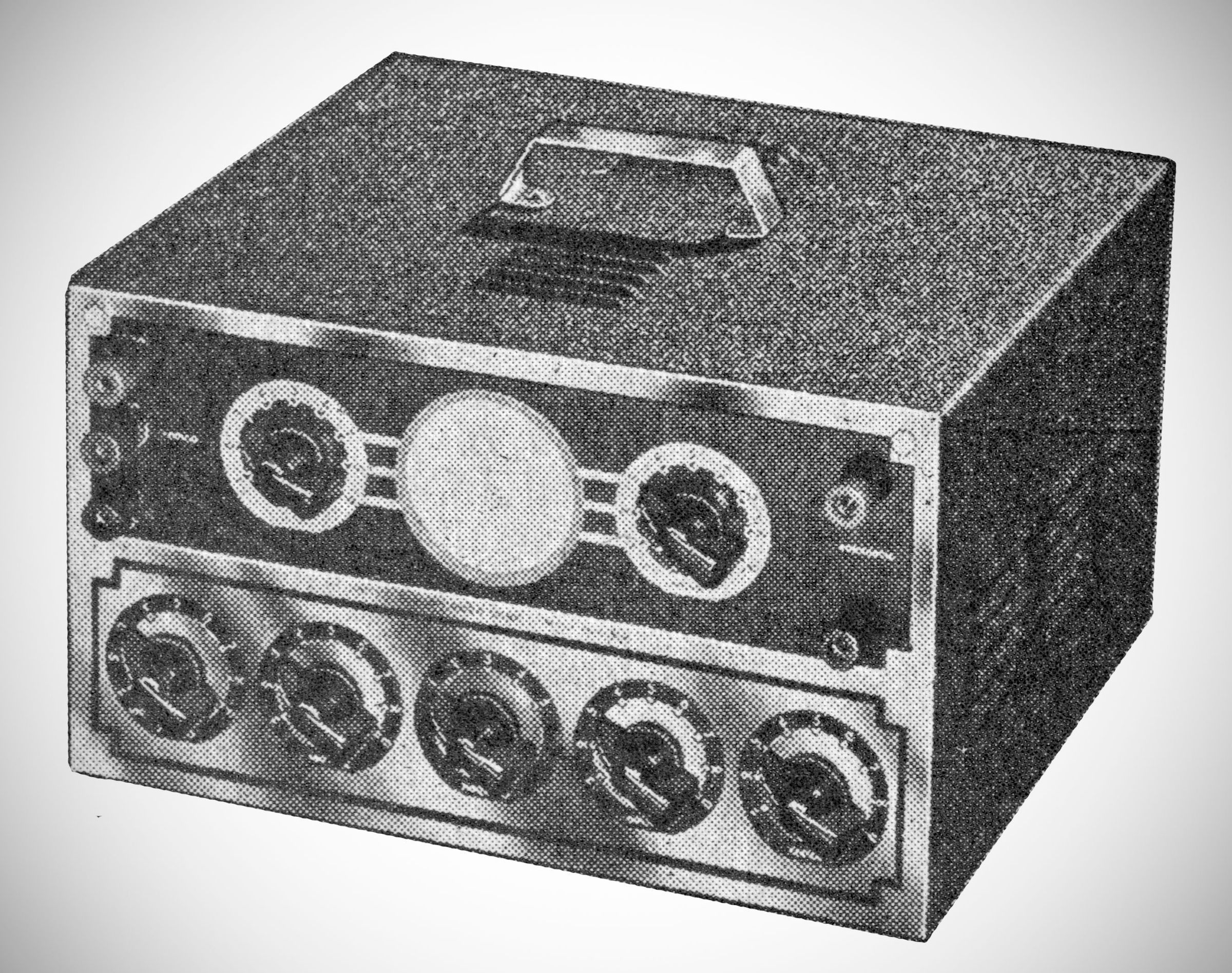 The entire unit is housed in a black crystal finished carrying case with etched aluminum front panel. The size of this unit is extremely small considering the 2' cathode ray tube and multiplicity of applications."