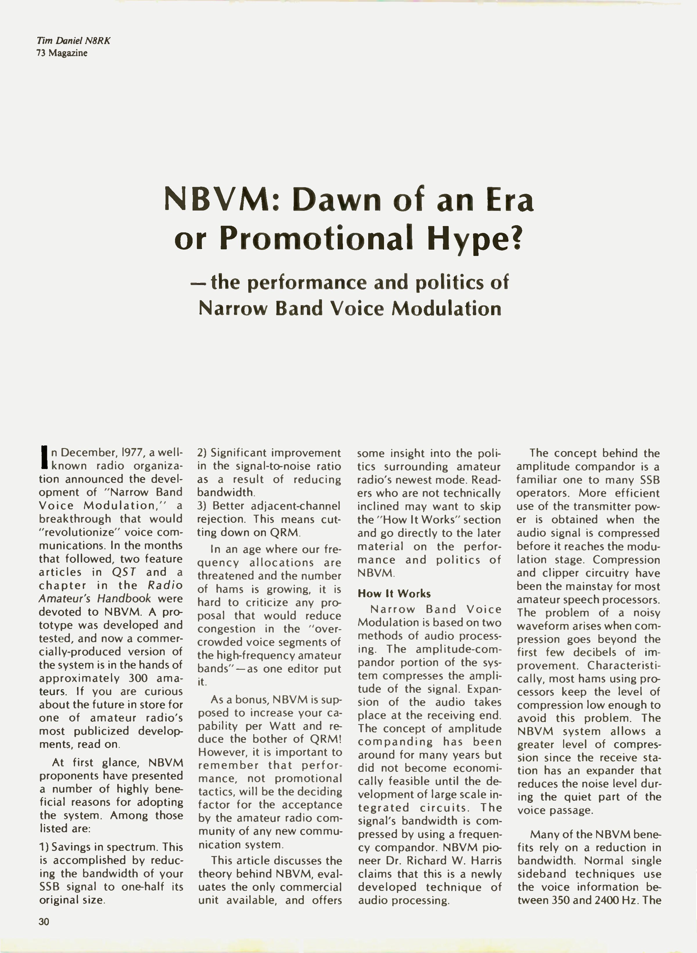 A Narrow Band Voice Modulation (NBVM) System
