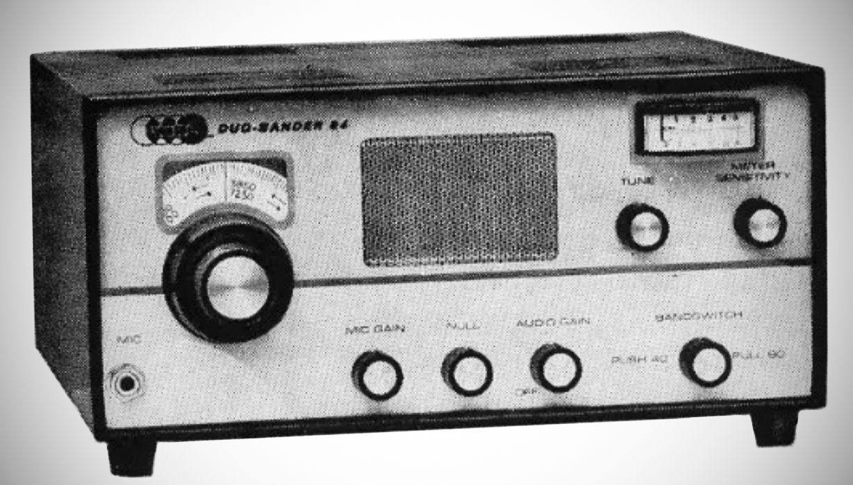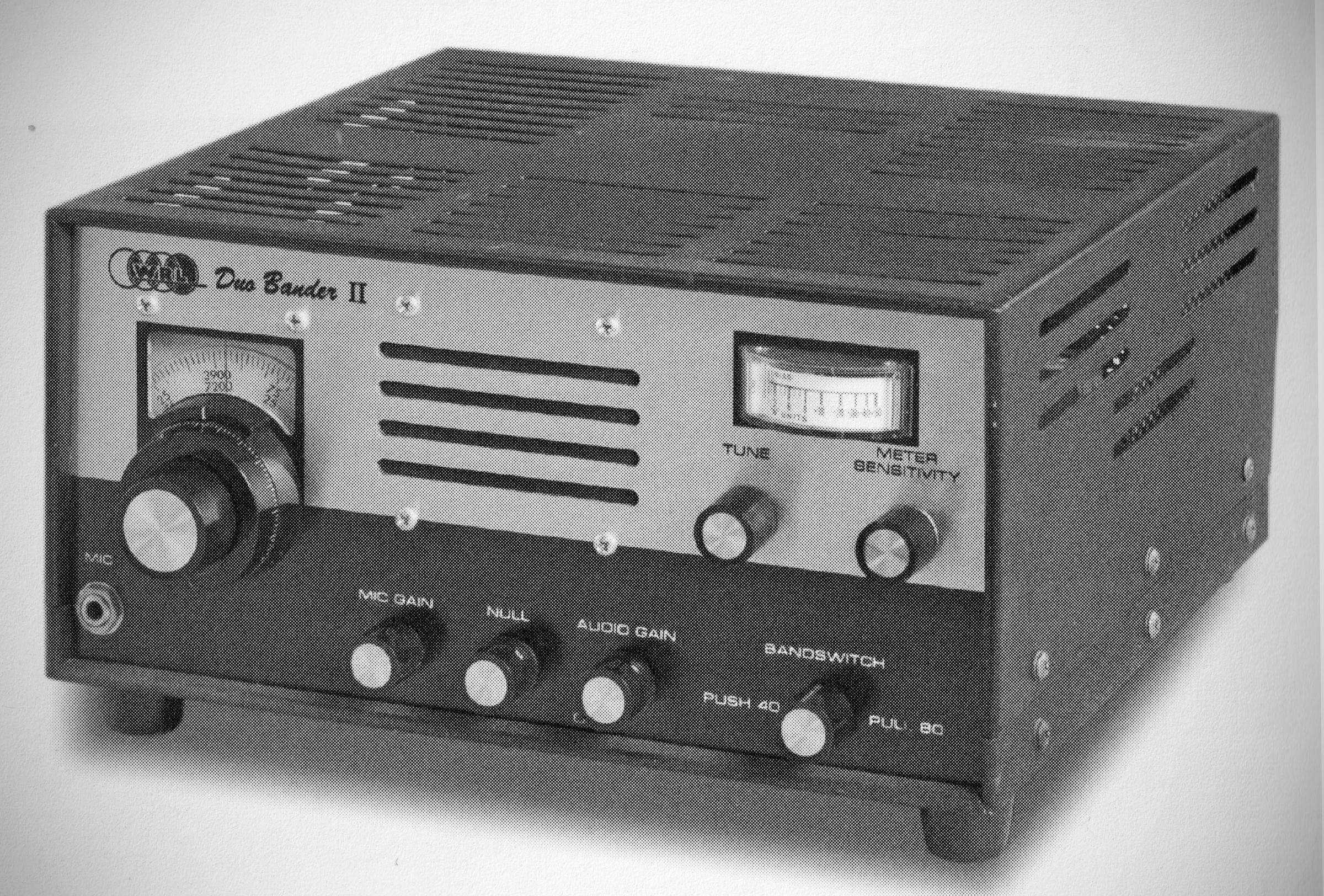 The Duo-Bander II worked lower sideband on 80 and 40 meters. It was rated at 400 watts PEP input. The transistorized VFO tuned the phone portions of both bands. It had a built-in speaker.
