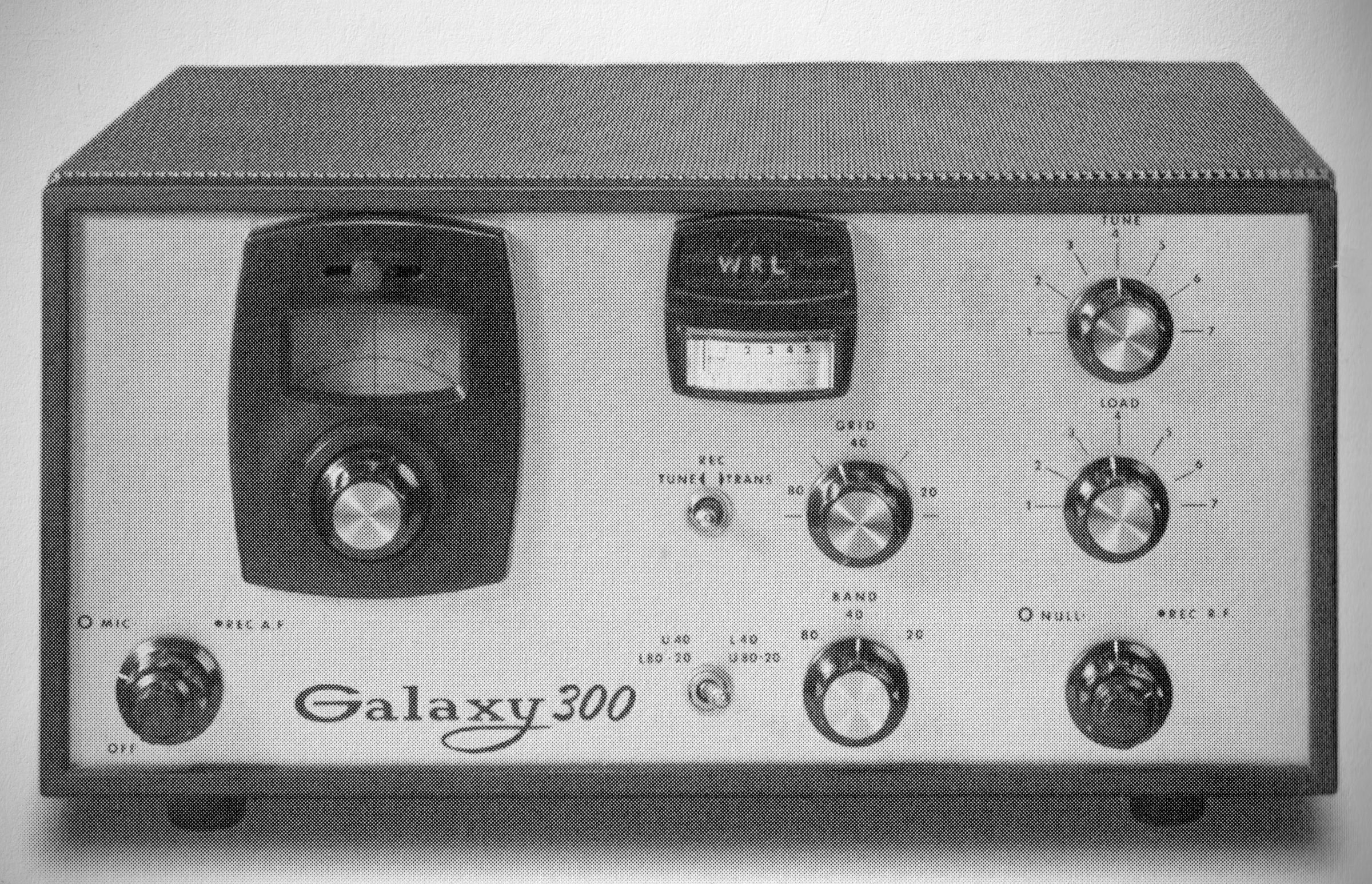 The Galaxy 300 transceiver covered the phone portions of 80, 40, and 20 rneters. It ran 300 watts PEP input on SSB and 175 watts on AM. It used a 9.1 MHz crystal filter and offered selectable sideband operation. PTT was standard and VOX was available as an option.
