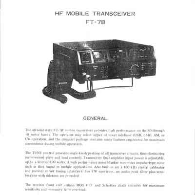 QST, Jul 1978, p. 93. QST, Mar 1979, p. 181. (FT-7B 100 watt version of the FT-7) QST, Jun 1979, inside back cover. (good photo) QST, Sep 1979, 114. QST, Mar 1980, p. 41. References Review. QST, Mar 1980, p. 41.