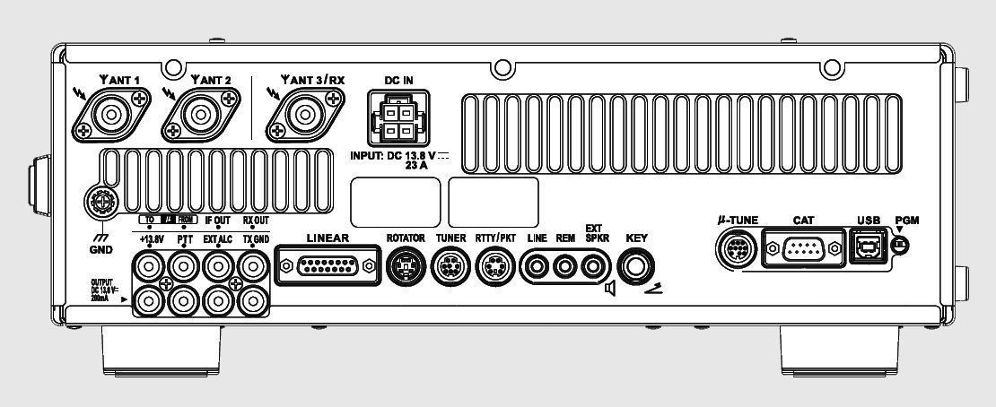 Three antenna connectors are available on the FT DX 3000 Rear Panel.