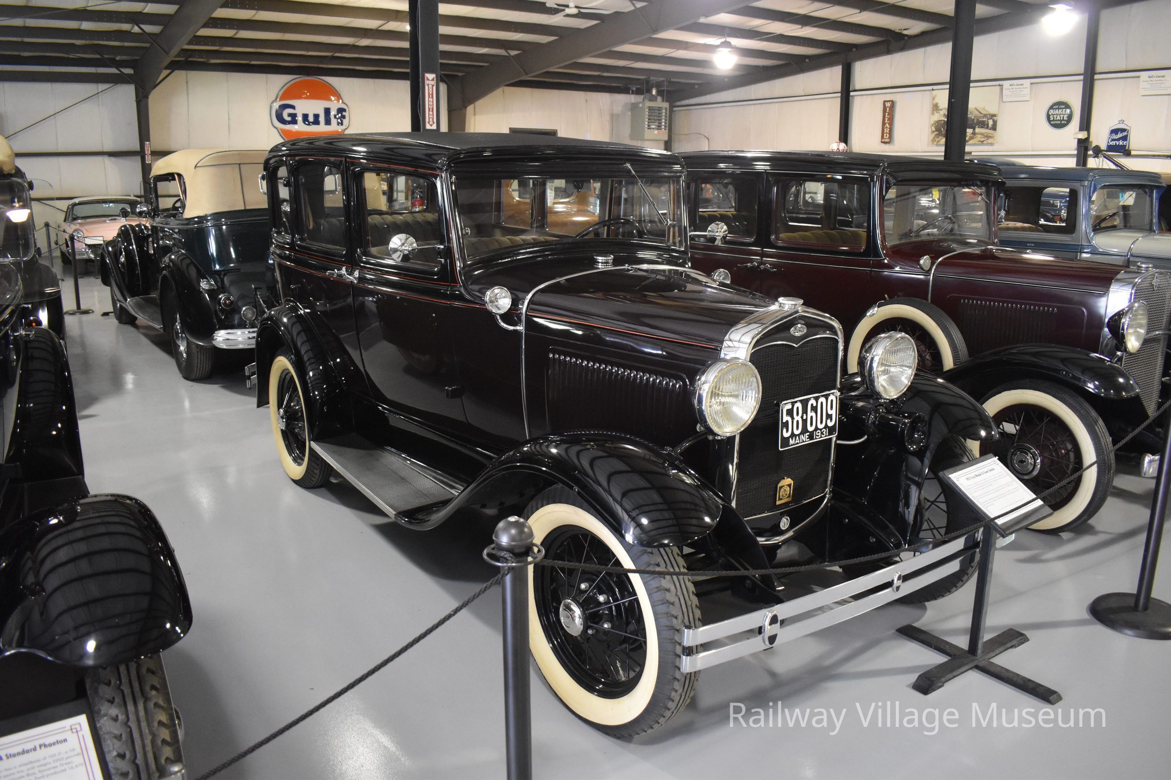 1931 was the last year the Model A was produced. This model is a three-window slant windshield sedan. This means the windshield is slanted and the car has only three windows visible from the front, like other Model A types. It is equipped with a four-cylinder engine that produces 40 hp and has a wheelbase of 103.5". Similar to other Model A types, this car had many optional accessories. Dual side mount mirrors, wide whitewall tires, dual cowl lights, and dual tail lights were some of them.