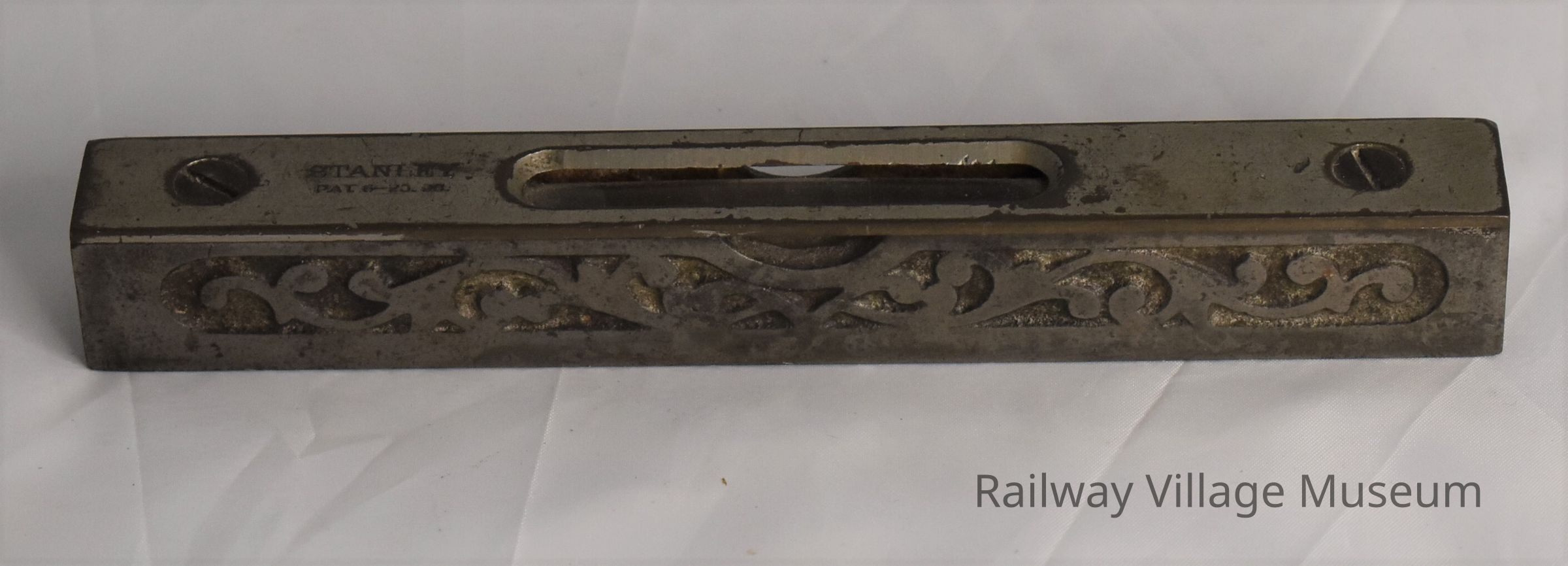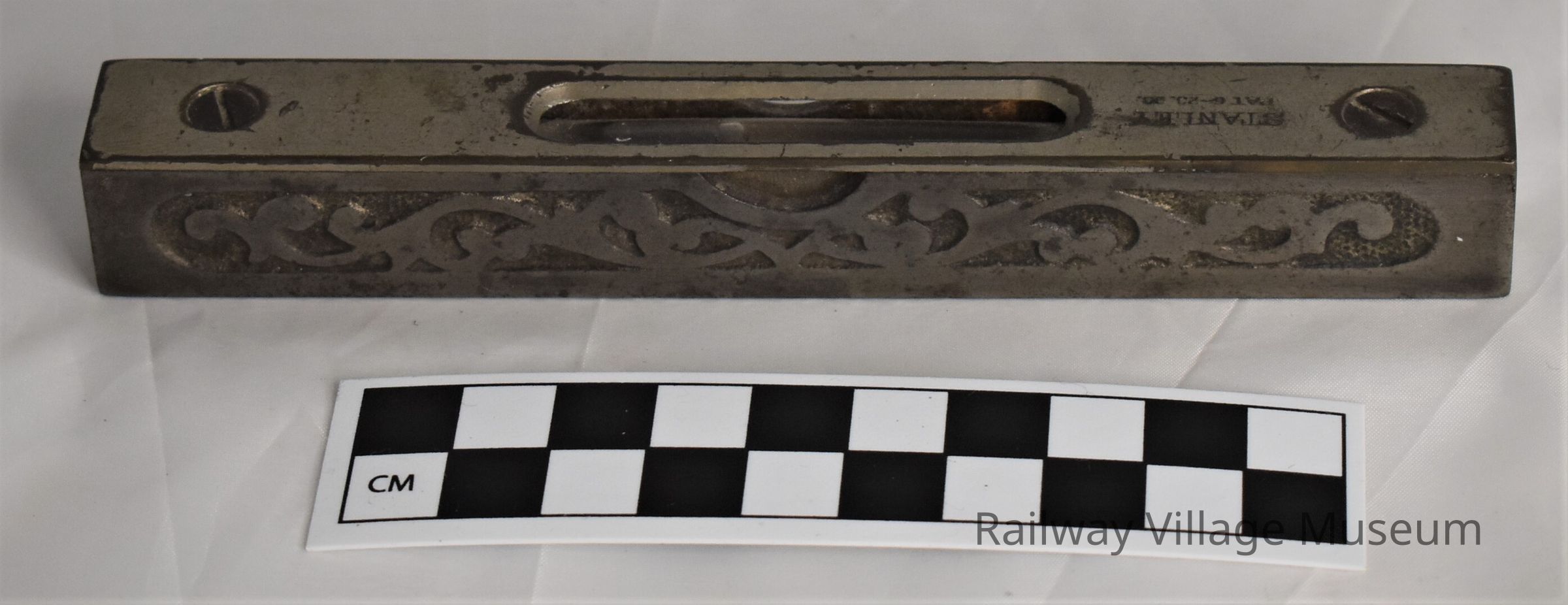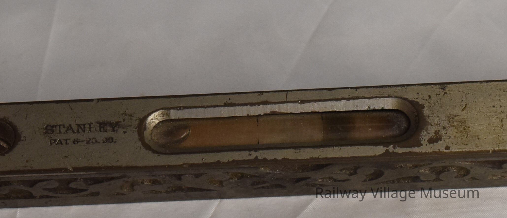 Decorative 6" iron Stanley level Pat. 6-20-96 used to determine whether a surface is level or plumb.Acquisition